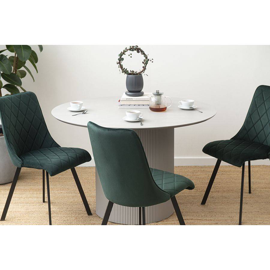 Стол Ellie удачно сочетает практичные материалы и стильный дизайн, благодаря чему отлично подходит для обустройства обеденной зоны и пространства для отдыха. Столешница с меламиновым покрытием не боится воздействия влаги и повреждений, не требует специального ухода. Основание из окрашенной МДФ обеспечивает конструкции устойчивость и надежность. Такой столик станет не просто функциональным предметом интерьера, но и оригинальным декором.