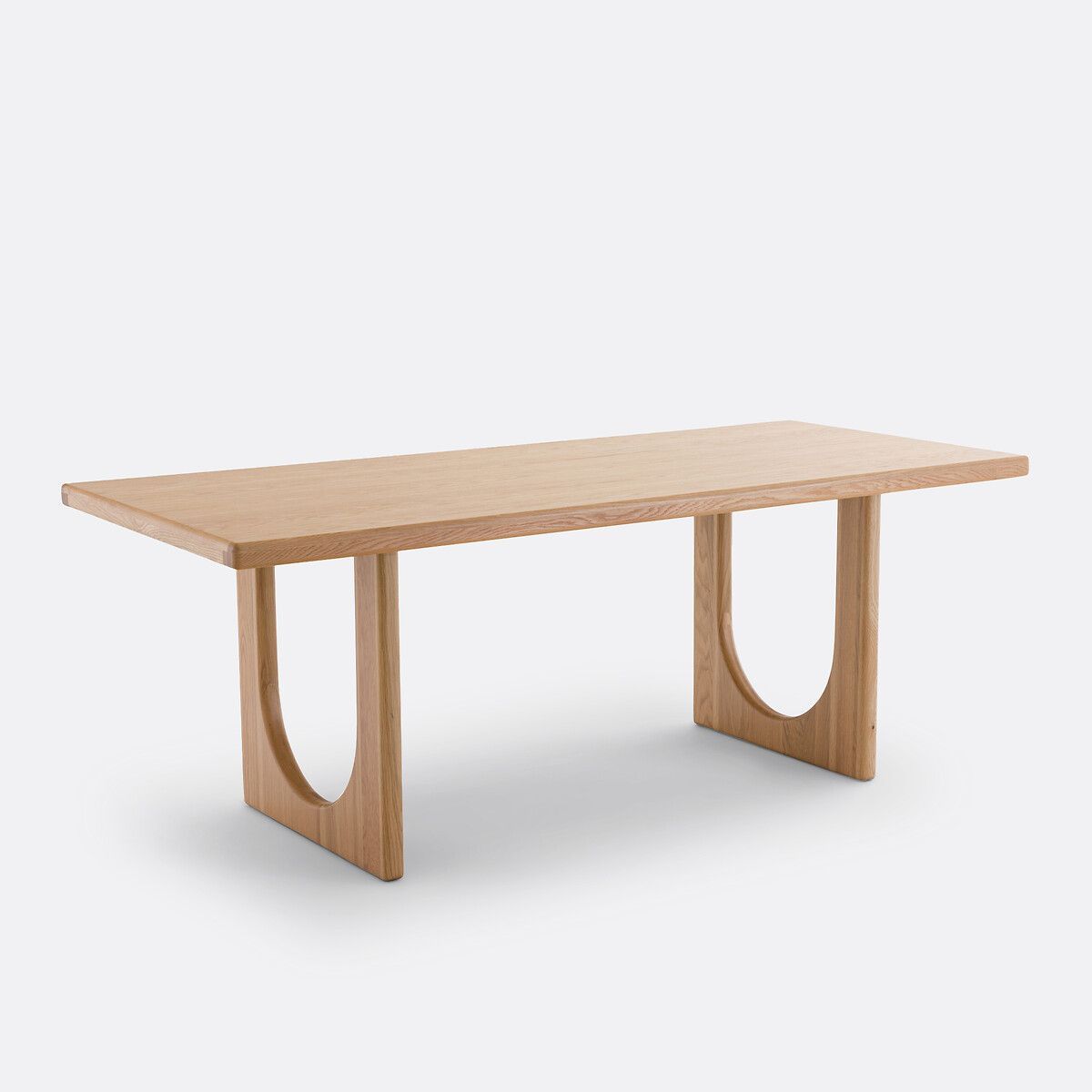 La Redoute Intérieurs представляет традиционный аббатский стол из массива дуба в новой интерпретации: скульптурные округлые формы, отсылки к нордическому стилю, «арочные» резные ножки, объёмная столешница…