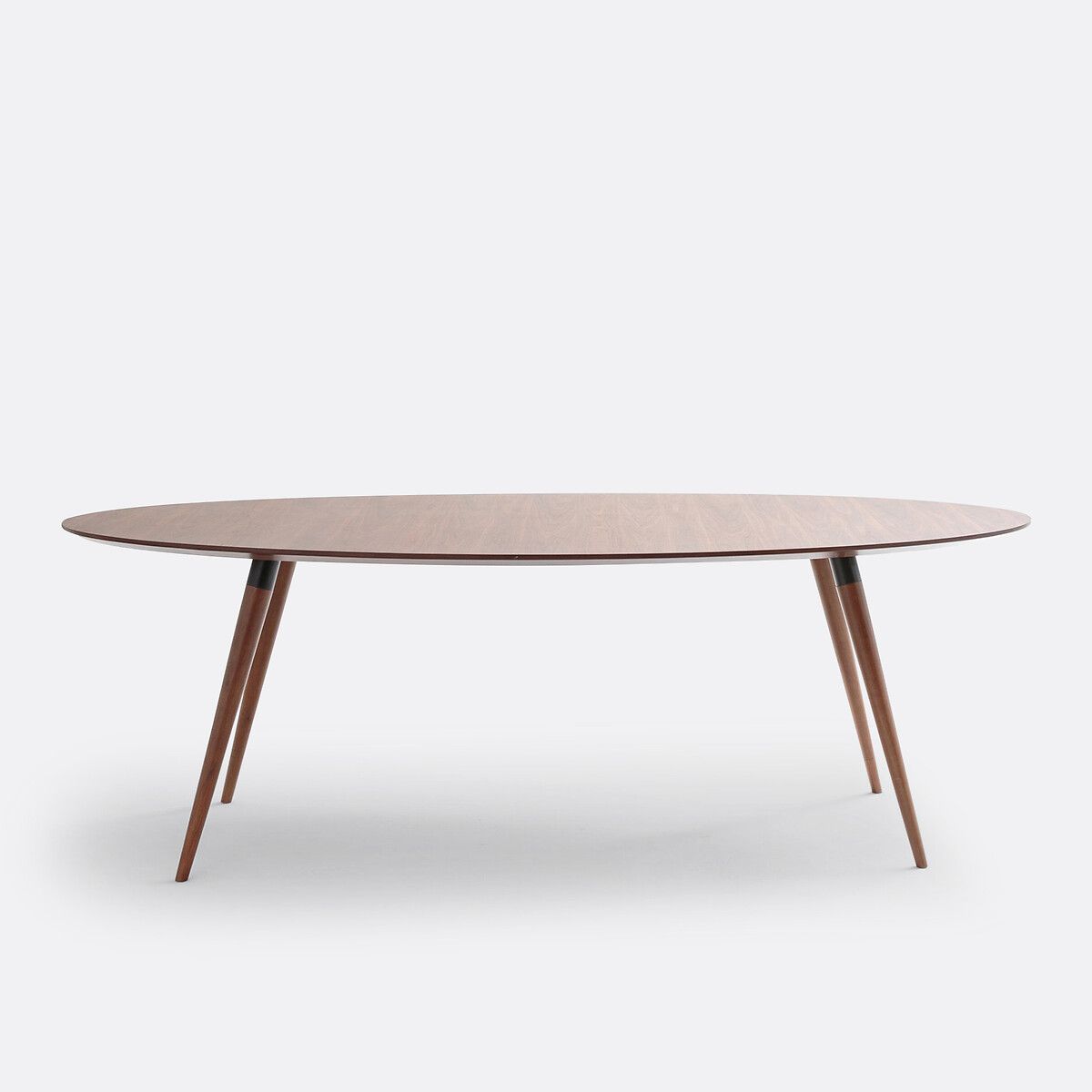 — Овальная столешница со скошенными гранями из МДФ шпон орехового дерева, НЦ-лакировка.