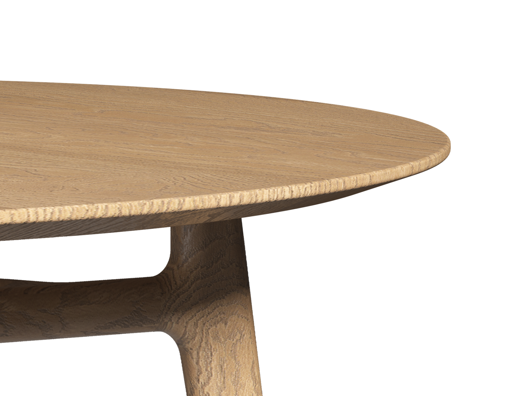 Стол, выполненный в лаконичном дизайне, станет основным элементом мебели в обеденной зоне, а также идеально подойдёт для переговорных комнат в офисных помещениях. Изделие полностью сделано из массива дуба, а матовые древесные отделки раскрывают красоту этого природного материала. Округлые формы стола наполняют пространство истинным уютом, смягчая геометрию стен и другой мебели. Надёжные опоры представляют собой прочную и цельную конструкцию из массива дуба, которая не имеет видимых элементов крепления — ничто не отвлекает от лаконичного дизайна изделия.