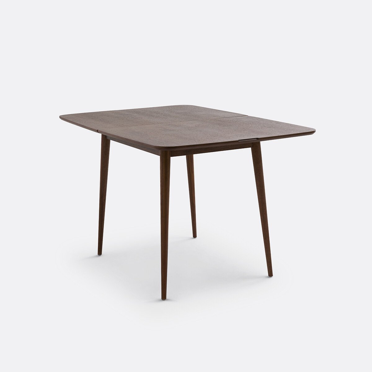 Раздвижной кухонный стол Aylin / Айлин. Современный и практичный обеденный стол в стиле неоретро. Практичный благодаря раскладной столешнице, которая может вмещать 4–6 персон.Описание • Раскладная столешница с удлинением • Скошенный край столешницы • Столешница и планка вокруг ножек из МДФ, шпонированной ореховым деревом, ПУ-лакировка • Веретенообразные ножки из массива орехового дерева, ПУ-лакировка • Древесина с сертификатом FSC® • Незаметная система крепления столешницы • На 2–4/6 персонУход • Рекомендуем использовать подложки под горячее или плейсматы для защиты поверхности стола.РазмерыВ сложенном виде • Ширина: 85 см • Высота: 76 см • Глубина: 65 смВ разложенном виде • Ширина: 130 см • Высота: 75 см • Глубина: 85 см • Самостоятельная сборка. • ДРЕВЕСИНА ИЗ УСТОЙЧИВО УПРАВЛЯЕМЫХ ЛЕСОВ. Наличие знака FSC® означает, что древесина, из которой изготовлено изделие, добыта с соблюдением международных стандартов: в процессе добычи не были нарушены права коренных народов, местных жителей и работников, и заготовка велась методом устойчивого лесопользования.Размеры и вес упаковкиОдна упаковка • Ш97 x В16 x Д75 см, 24,5 кг