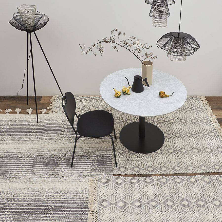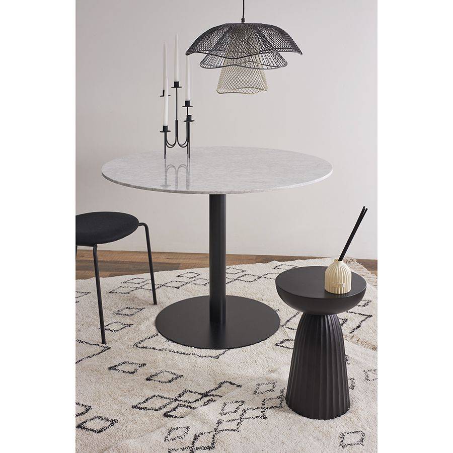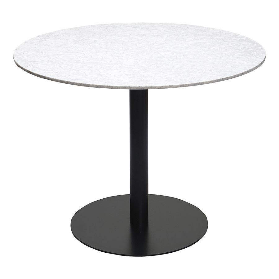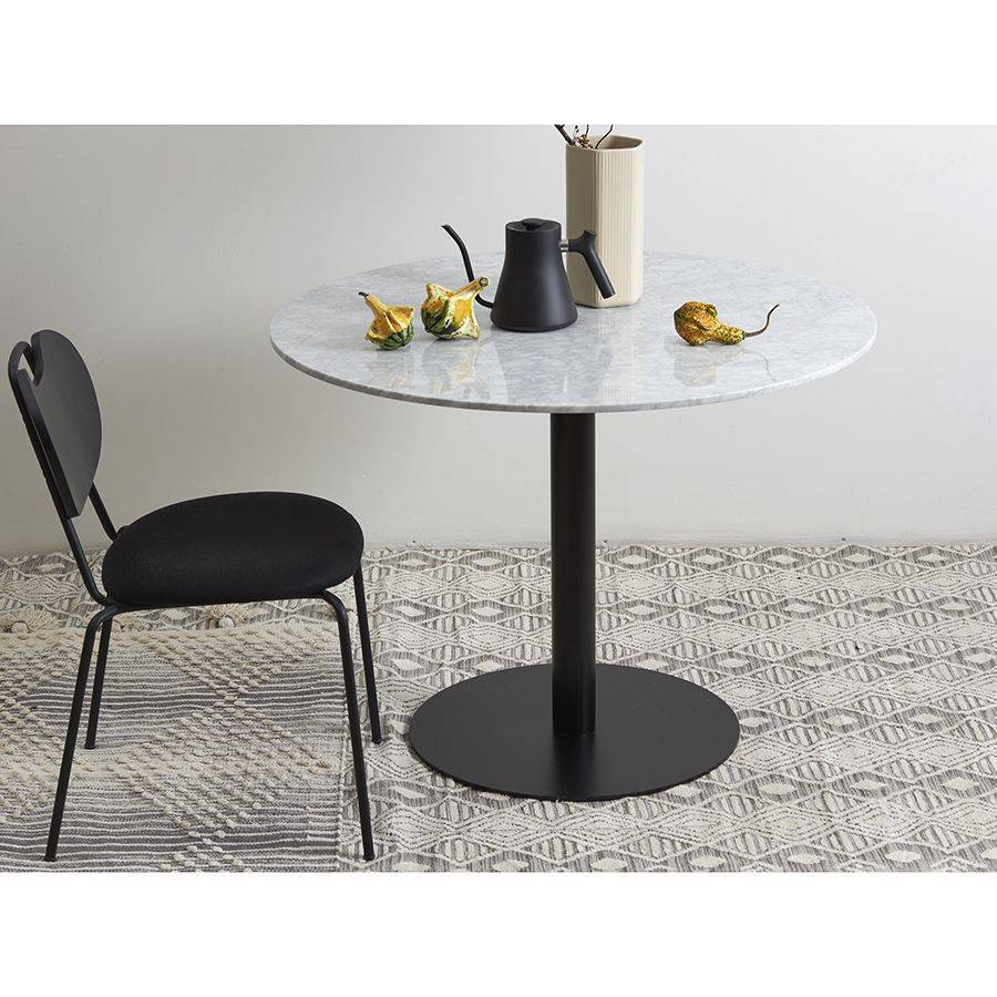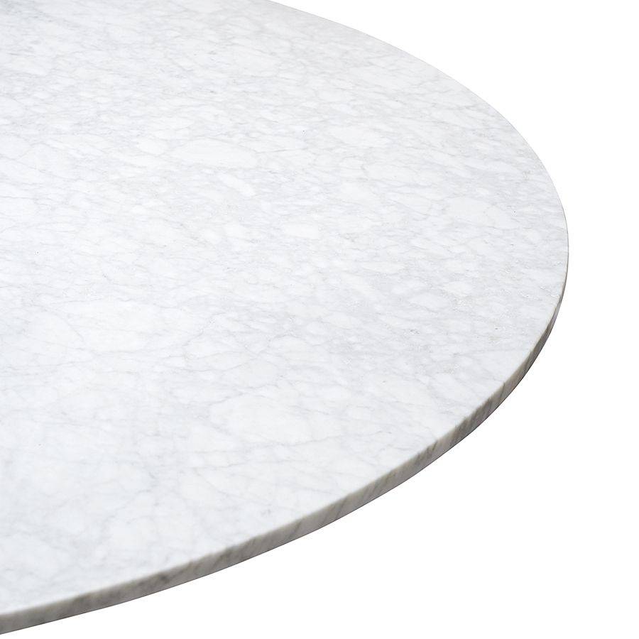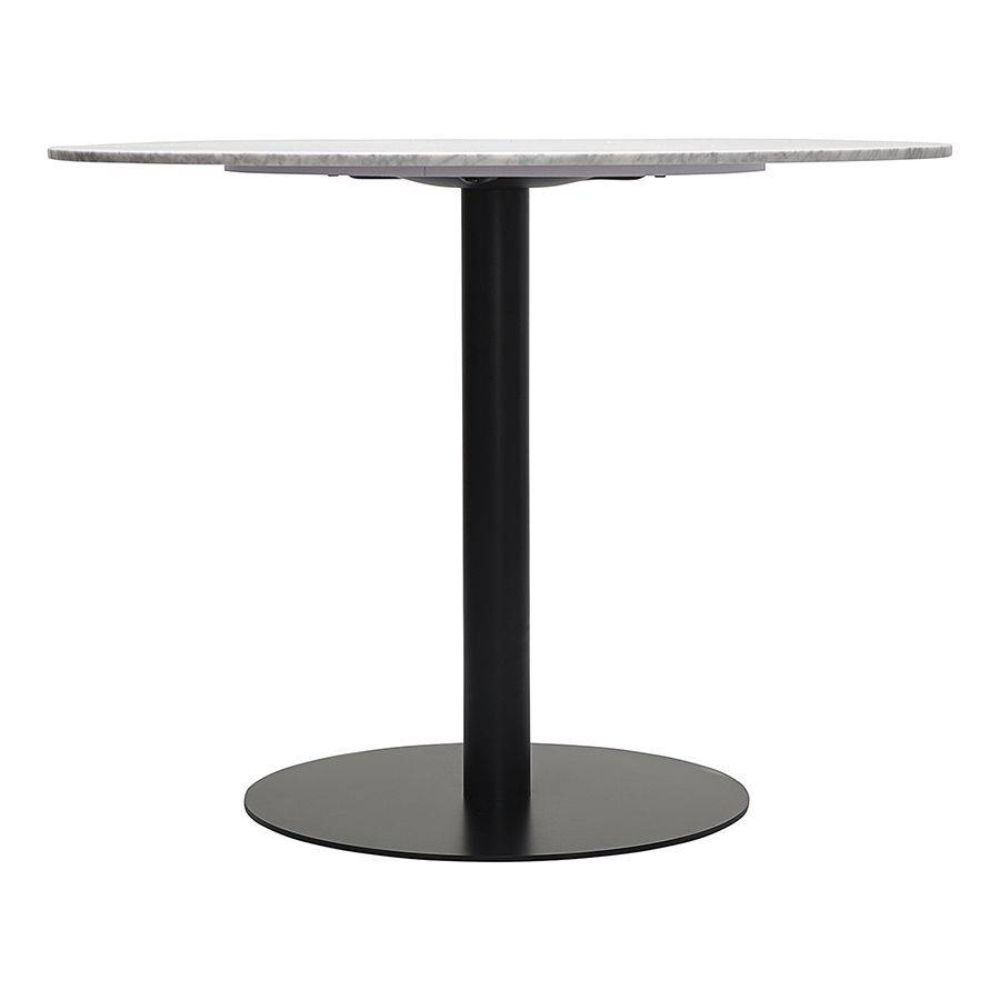 Материалы: столешница — натуральный мрамор, основание — нержавеющая сталь. Размеры: 100х100х75 см. Цвет: белый мрамор/черный.
