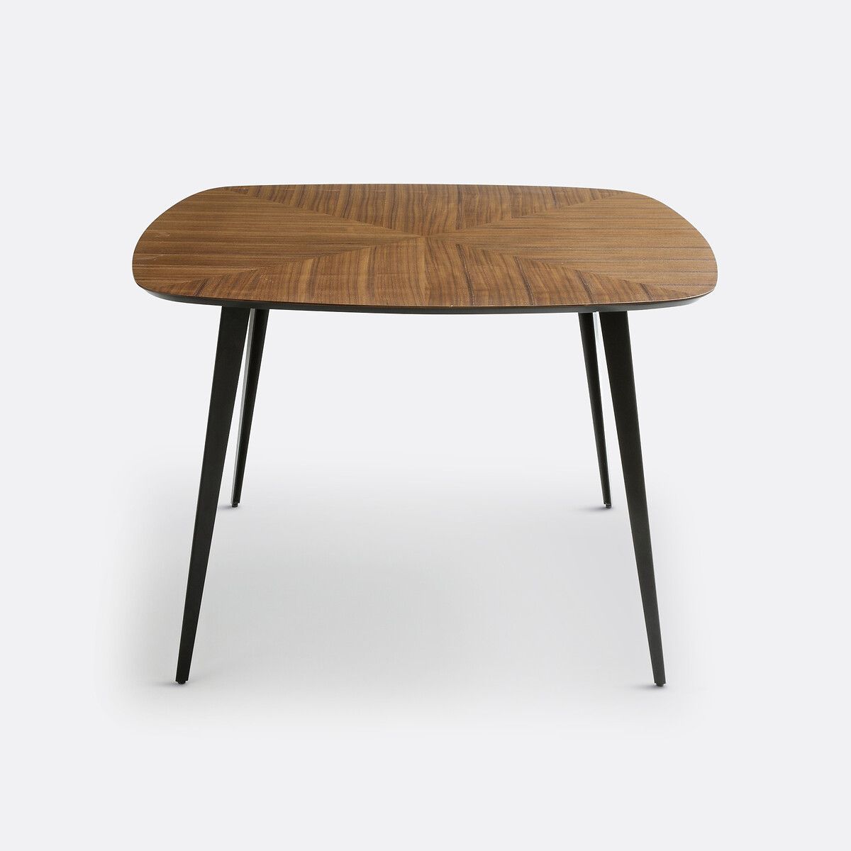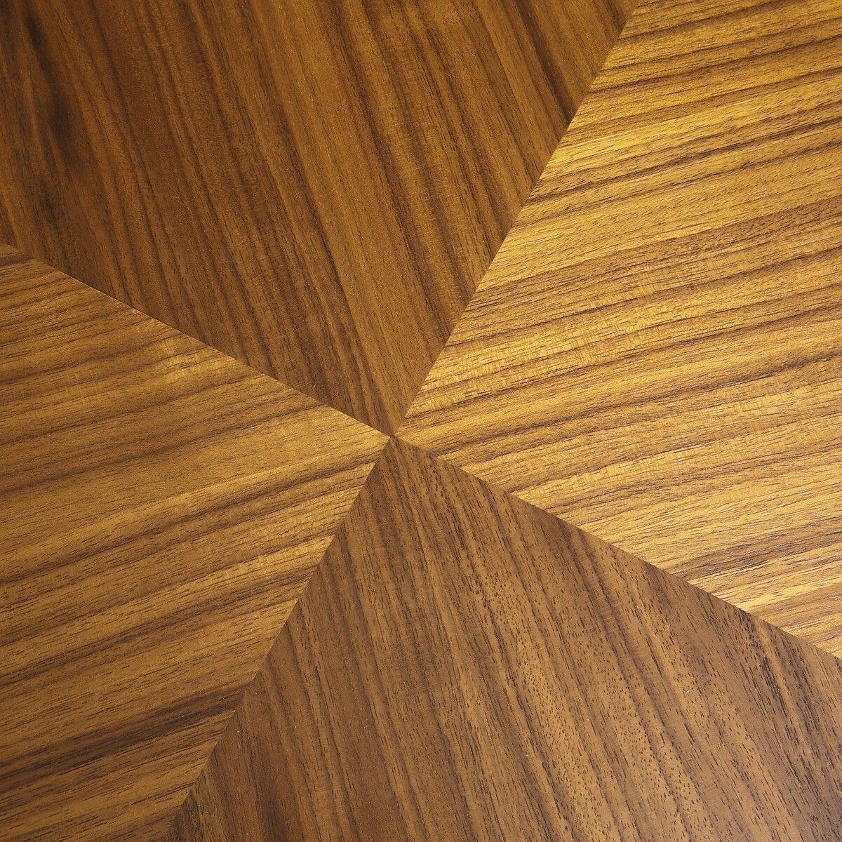— Квадратная столешница из МДФ, закругленные края, мозаика из ореха, покрытие нитролаком.