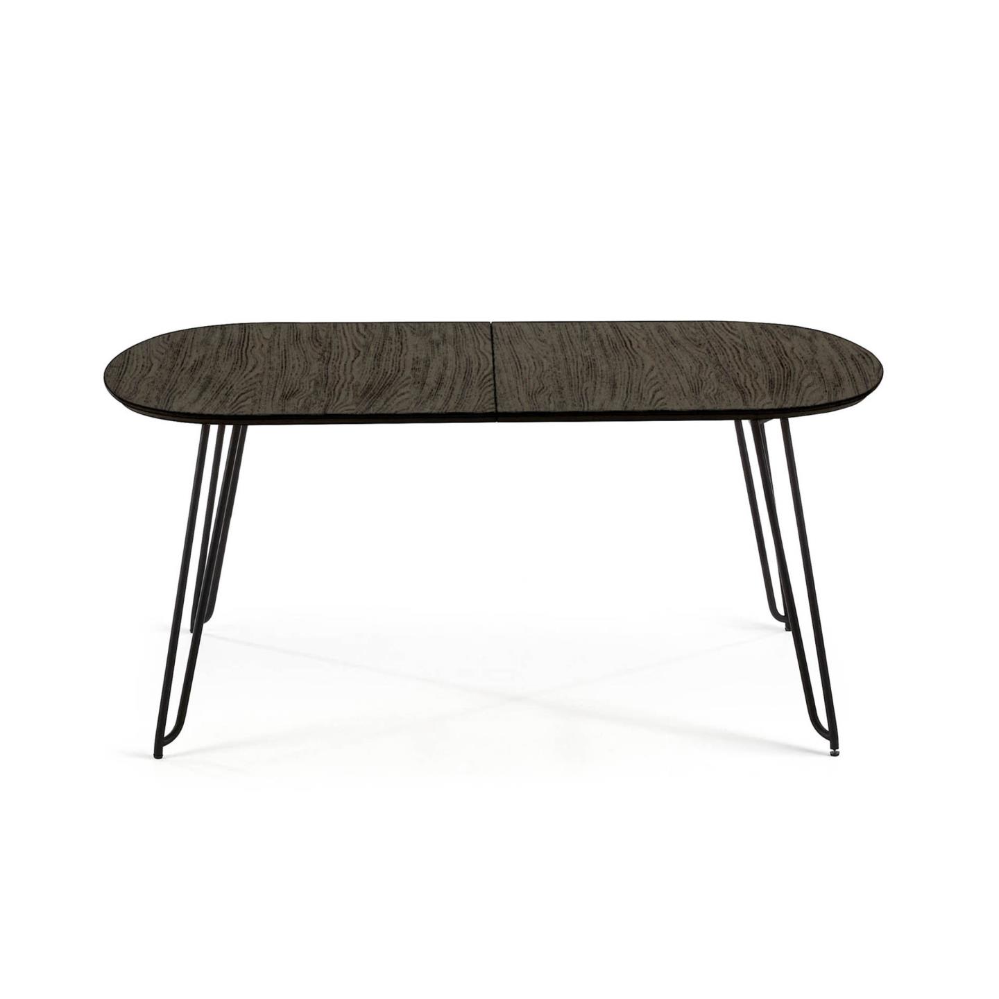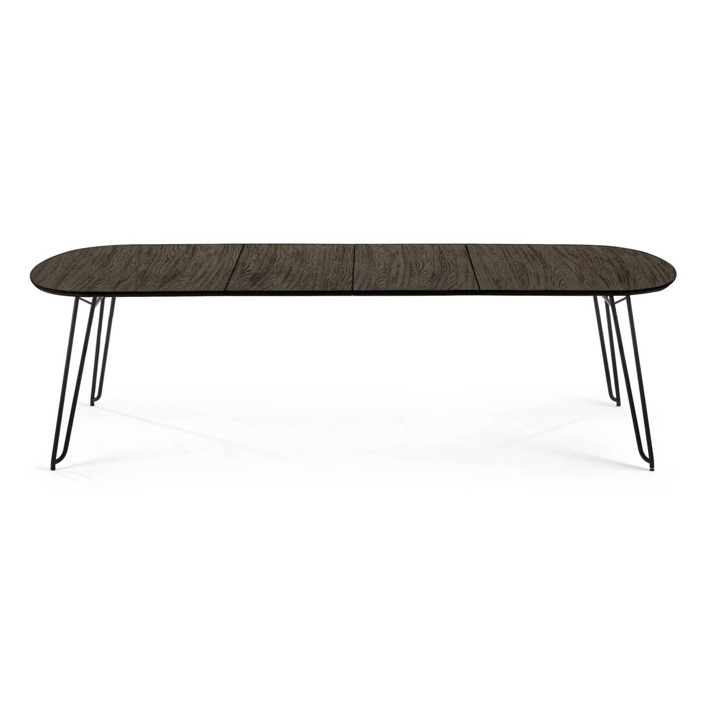 Стол раздвижной Norfort от фабрики La Forma – потрясающий фьюжн для квартиры «со вкусом». Стол выглядит очаровательно и стильно. Его изящная конструкция визуально облегчает внешний вид. Поэтому он кажется совершенно негабаритным, даже если раздвинуть столешницу. Да, дизайнерам удалось соединить несовместимое – утонченность и большую площадь. Стол отлично подойдет для гостиной в городской квартире, оформленной в современном стиле. Стол овальной формы. Столешница сделана из МДФ натурального дерева. Для защиты поверхности во время эксплуатации, на нее нанесено специальное покрытие. Цвет столешницы у базовой модели – венге. Опора имеет сварную конструкцию, сделана из металла, покрытого черной эпоксидной краской. Она состоит из четырех двойных ножек, рамы, поддерживающей столешницу по всему периметру, и поперечных перекладин, обеспечивающих прочность при нагрузках. Чтобы удлинить стол, нужно раздвинуть края столешницы и извлечь дополнительные панели. Далее их следует уложить на металлические направляющие. В зависимости от выбранной модели, максимальная длина стола составляет 320 см. Размеры: длина – 140-220 или 170-320 см, ширина – 90 или 100 см, высота – 75 см. Для самостоятельной сборки в комплектацию включены инструкция и крепеж. В коллекции Norfort также представлены круглый стол, тумба под ТВ, буфет.