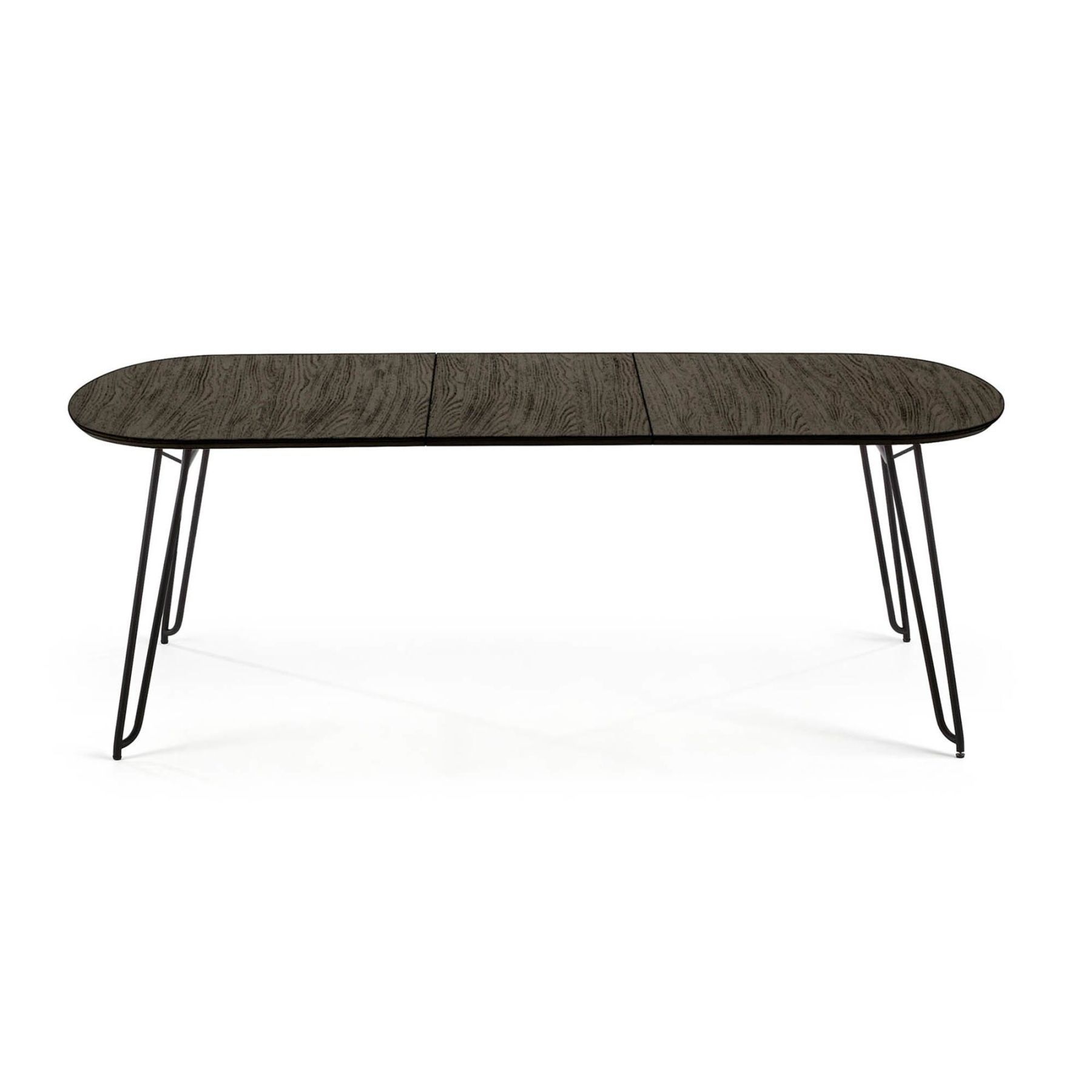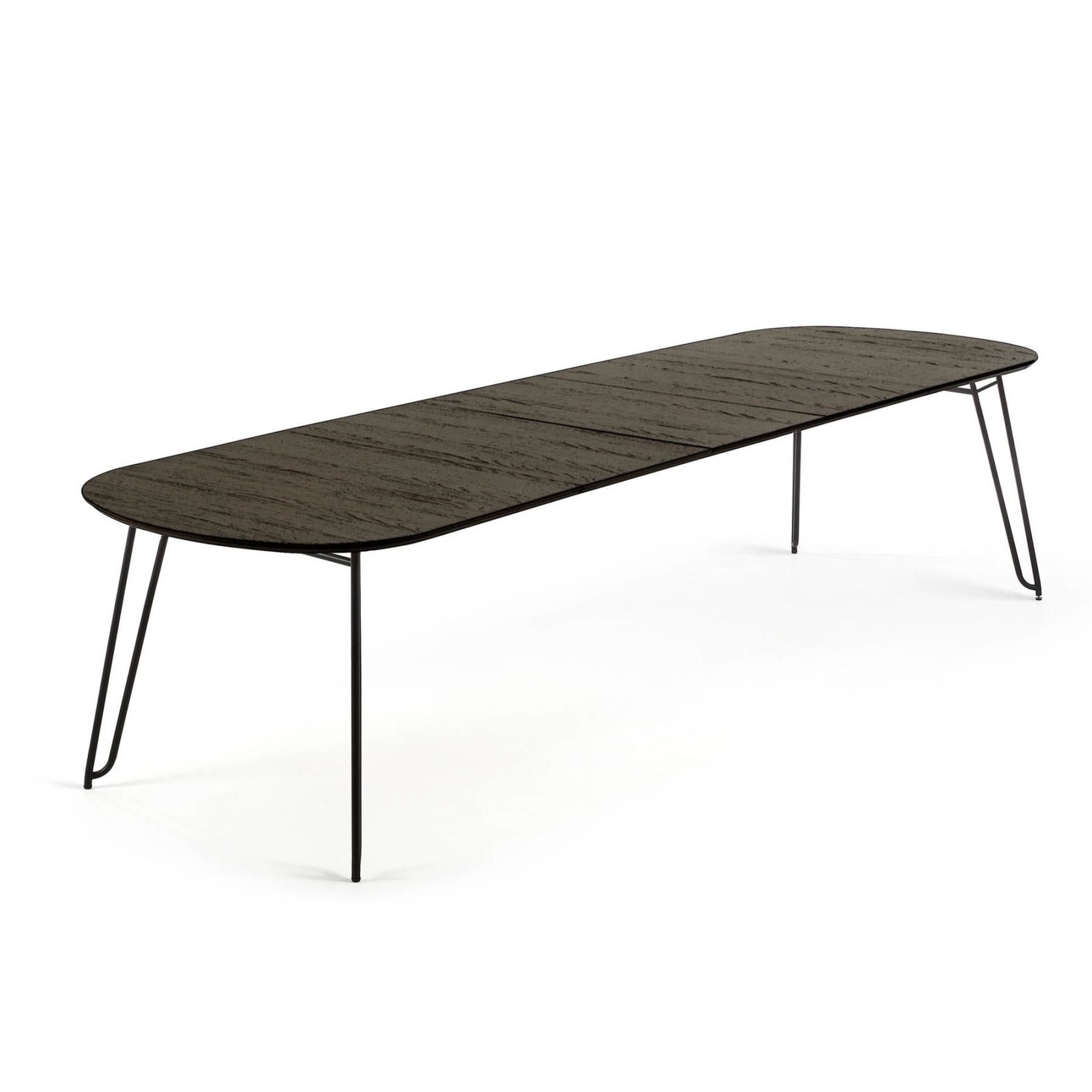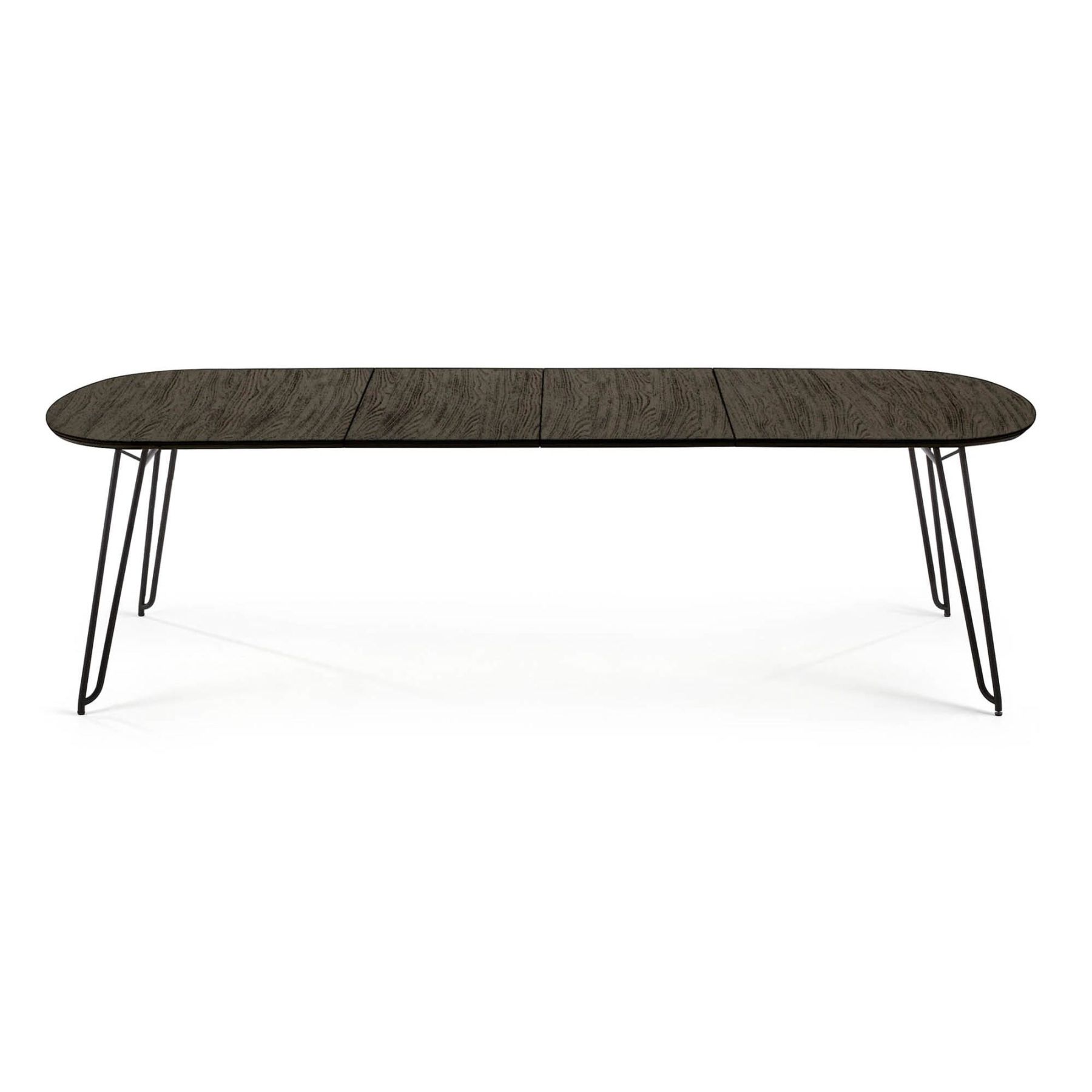 Стол раздвижной Norfort от фабрики La Forma – потрясающий фьюжн для квартиры «со вкусом». Стол выглядит очаровательно и стильно. Его изящная конструкция визуально облегчает внешний вид. Поэтому он кажется совершенно негабаритным, даже если раздвинуть столешницу. Да, дизайнерам удалось соединить несовместимое – утонченность и большую площадь. Стол отлично подойдет для гостиной в городской квартире, оформленной в современном стиле. Стол овальной формы. Столешница сделана из МДФ натурального дерева. Для защиты поверхности во время эксплуатации, на нее нанесено специальное покрытие. Цвет столешницы у базовой модели – венге. Опора имеет сварную конструкцию, сделана из металла, покрытого черной эпоксидной краской. Она состоит из четырех двойных ножек, рамы, поддерживающей столешницу по всему периметру, и поперечных перекладин, обеспечивающих прочность при нагрузках. Чтобы удлинить стол, нужно раздвинуть края столешницы и извлечь дополнительные панели. Далее их следует уложить на металлические направляющие. В зависимости от выбранной модели, максимальная длина стола составляет 320 см. Размеры: длина – 140-220 или 170-320 см, ширина – 90 или 100 см, высота – 75 см. Для самостоятельной сборки в комплектацию включены инструкция и крепеж. В коллекции Norfort также представлены круглый стол, тумба под ТВ, буфет.