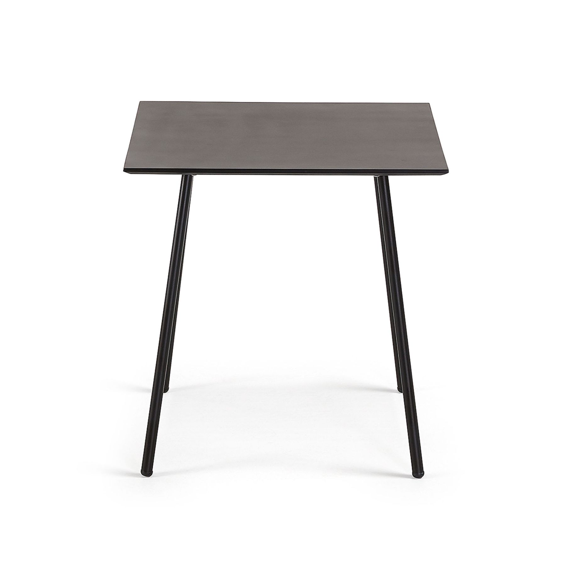 Стол Ulrich 75х75 черный от фабрики La Forma – когда нужно место только для самого необходимого. Стол Ulrich – это прекрасная идея с пользой дополнить свой интерьер. Когда нужно поставить буквально пару чашек с кофе или организовать перекус, то такой столик будет как нельзя кстати. Прочная конструкция и лаконичный дизайн – важные бонусы для эксплуатации в городской квартире. Столик квадратной формы, выполнен из оцинкованной стали. Столешница покрыта полицементом – современным материалом, который не портится под воздействием влаги и ультрафиолета, легко очищается от загрязнений. Толщина столешницы составляет 1 см. Удерживают столик четыре трубчатые ножки, покрытые черной эпоксидной краской. Их диаметр 3 см, что гарантирует прочность конструкции и стойкость к высоким весовым нагрузкам. На ножках предусмотрены наконечники. Размеры изделия: длина – 75 см, ширина – 75 см, высота – 75 см. Вес составляет 20 кг. Ножки потребуется прикрутить самостоятельно. Инструкция, крепеж входят в комплектацию. Допускается эксплуатация изделия на улице под навесом.
