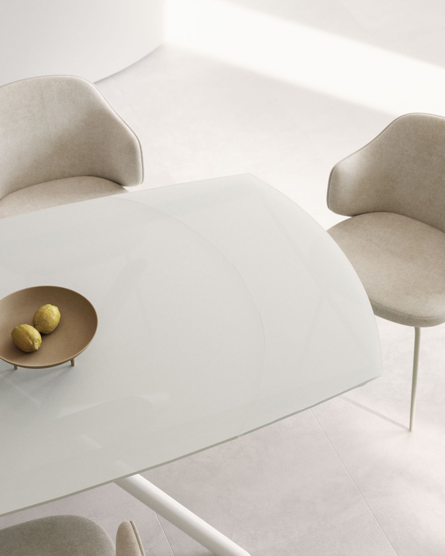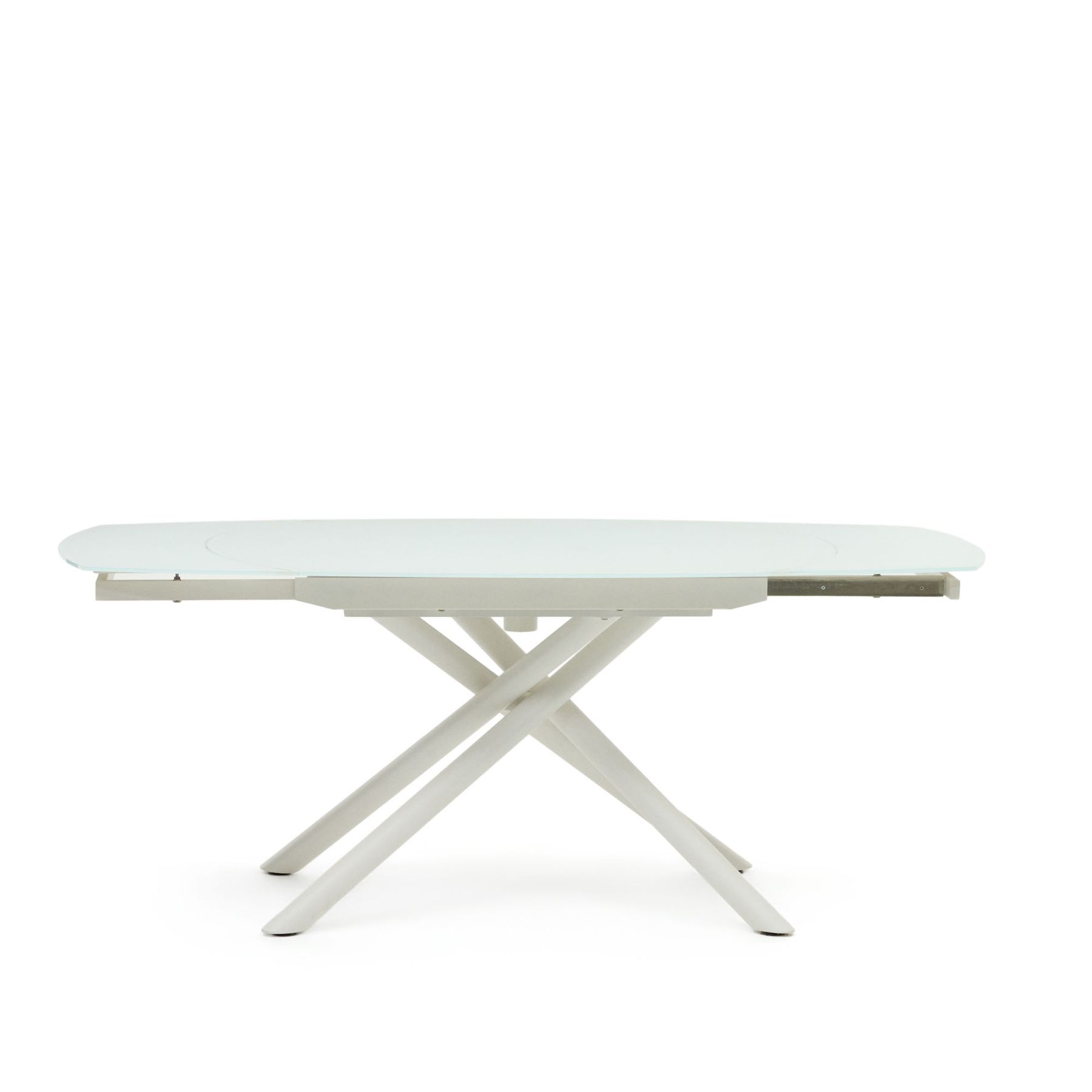 С этим раздвижным столом со столешницей из закаленного стекла в вашем доме найдется место для всех. Благодаря скрещенным стальным ножкам у вас больше места и комфорта, что обеспечивает больше места между стульями, больше комфорта и больше свободы движений.