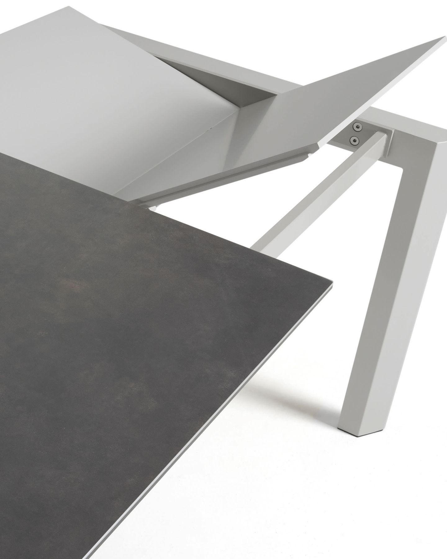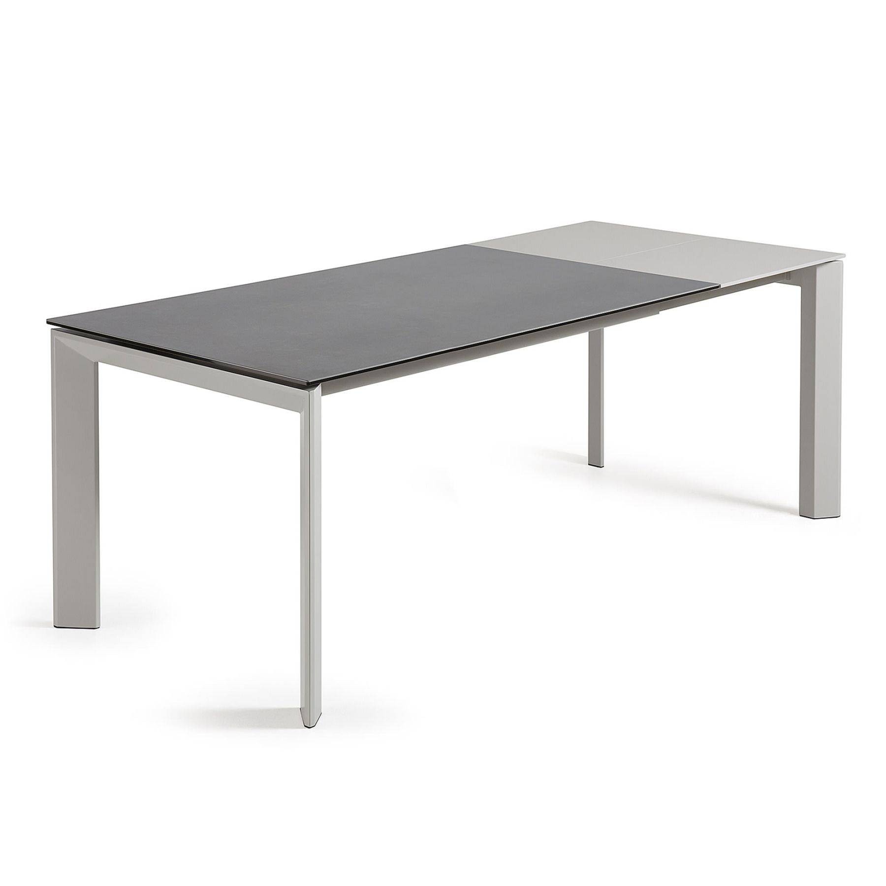 Стол Atta серый керамический от фабрики La Forma – безупречно спрятанная сложная конструкция в простом минимализме. Стол Atta – это победа инженерной мысли. Так мастерски спрятать выдвижной механизм и замаскировать его под тонкой столешницей смогут только профессионалы. Керамика – точно подобранный материал, который делает изделие эффектным, даже несмотря на принадлежность к минимализму. Стол прямоугольной формы. Столешница толщиной 1 см сделана из ударопрочной керамики графитового или коричневого цвета (для базовых моделей). Данный материал практичный, стойко переносит воздействие высоких температур, легко очищается от загрязнений. Выдвижной механизм находится справа. Чтобы раздвинуть стол, необходимо потянуть за ножки и достать сложенную пополам дополнительную панель (она из МДФ). Раздвижной механизм сделан из нержавеющей стали. Опора выполнена из металла, покрыта серой краской. Благодаря поддержке столешницы по всему периметру, обеспечивается стойкость к высоким весовым нагрузкам, правильное распределение веса. Размеры стола: длина – 120-180 см, 140-200 см или 160-220 см, ширина – 90 см, высота – 76 см.