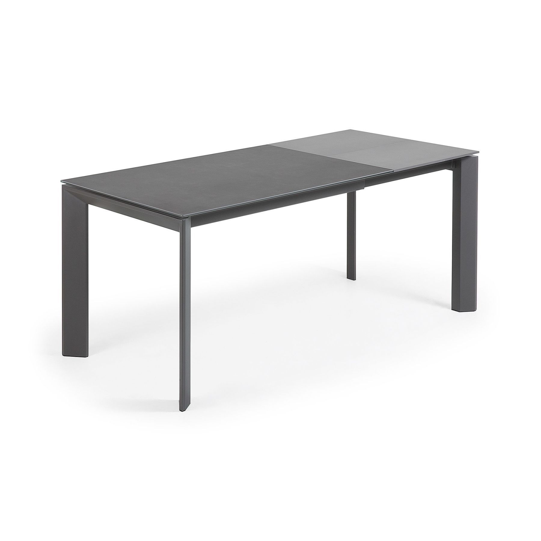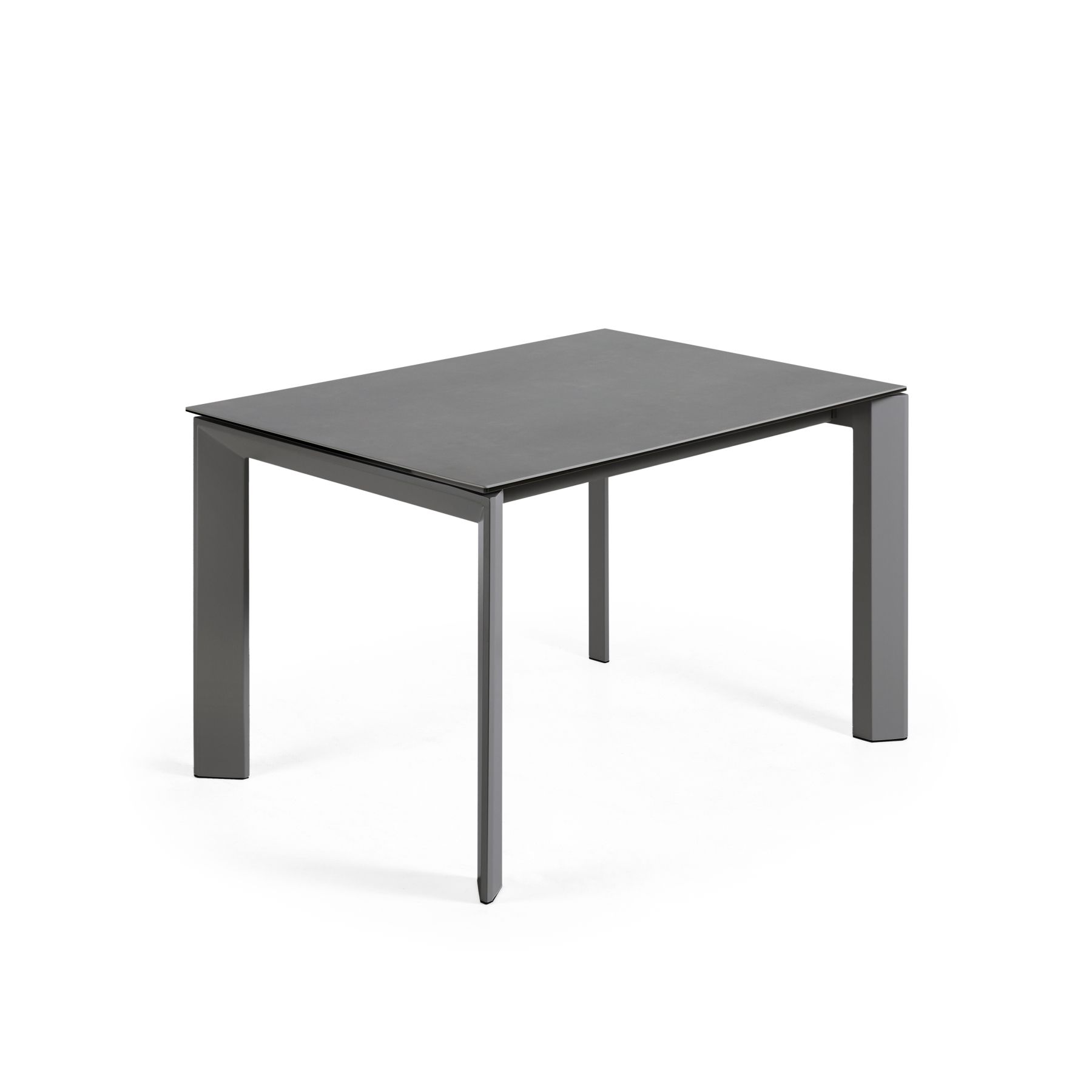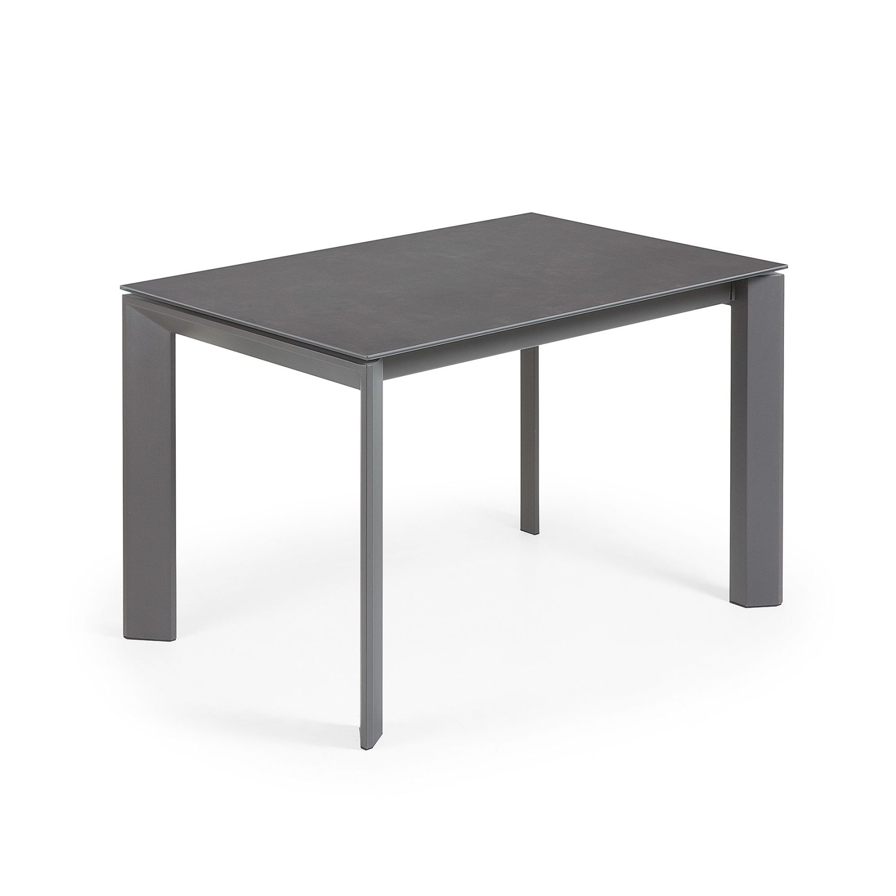 Стол Atta серый керамический от фабрики La Forma – безупречно спрятанная сложная конструкция в простом минимализме. Стол Atta – это победа инженерной мысли. Так мастерски спрятать выдвижной механизм и замаскировать его под тонкой столешницей смогут только профессионалы. Керамика – точно подобранный материал, который делает изделие эффектным, даже несмотря на принадлежность к минимализму. Стол прямоугольной формы. Столешница толщиной 1 см сделана из ударопрочной керамики графитового или коричневого цвета (для базовых моделей). Данный материал практичный, стойко переносит воздействие высоких температур, легко очищается от загрязнений. Выдвижной механизм находится справа. Чтобы раздвинуть стол, необходимо потянуть за ножки и достать сложенную пополам дополнительную панель (она из МДФ). Раздвижной механизм сделан из нержавеющей стали. Опора выполнена из металла, покрыта серой краской. Благодаря поддержке столешницы по всему периметру, обеспечивается стойкость к высоким весовым нагрузкам, правильное распределение веса. Размеры стола: длина – 120-180 см, ширина – 80 см, высота – 76 см.