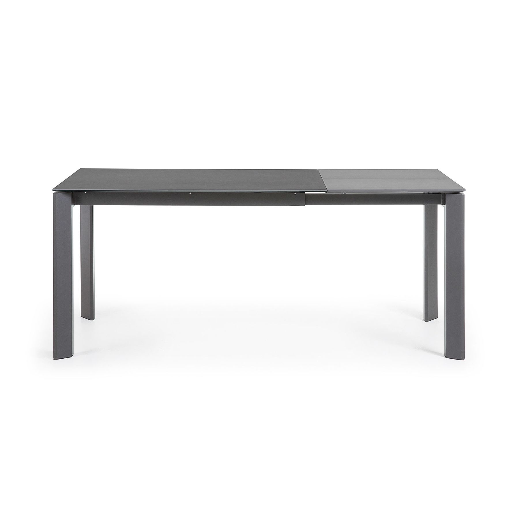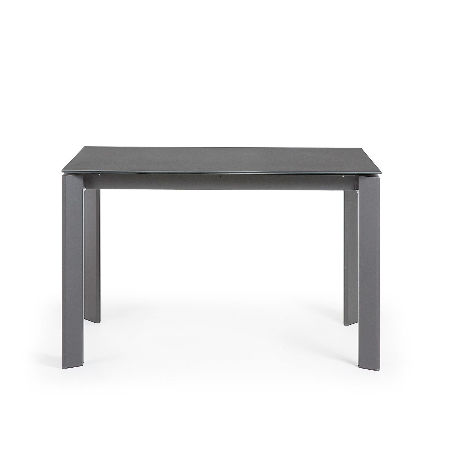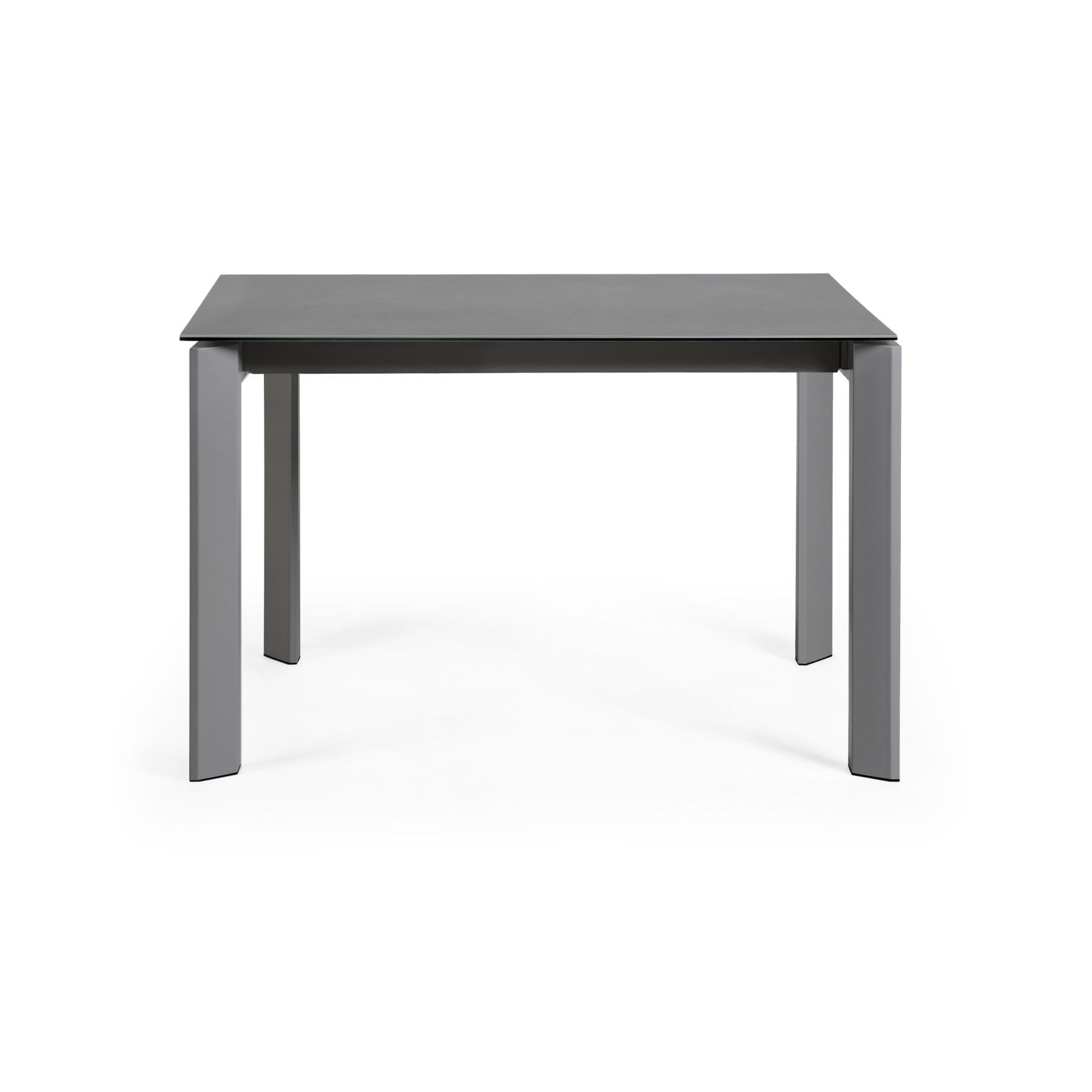 Стол Atta серый керамический от фабрики La Forma – безупречно спрятанная сложная конструкция в простом минимализме. Стол Atta – это победа инженерной мысли. Так мастерски спрятать выдвижной механизм и замаскировать его под тонкой столешницей смогут только профессионалы. Керамика – точно подобранный материал, который делает изделие эффектным, даже несмотря на принадлежность к минимализму. Стол прямоугольной формы. Столешница толщиной 1 см сделана из ударопрочной керамики графитового или коричневого цвета (для базовых моделей). Данный материал практичный, стойко переносит воздействие высоких температур, легко очищается от загрязнений. Выдвижной механизм находится справа. Чтобы раздвинуть стол, необходимо потянуть за ножки и достать сложенную пополам дополнительную панель (она из МДФ). Раздвижной механизм сделан из нержавеющей стали. Опора выполнена из металла, покрыта серой краской. Благодаря поддержке столешницы по всему периметру, обеспечивается стойкость к высоким весовым нагрузкам, правильное распределение веса. Размеры стола: длина – 120-180 см, ширина – 80 см, высота – 76 см.