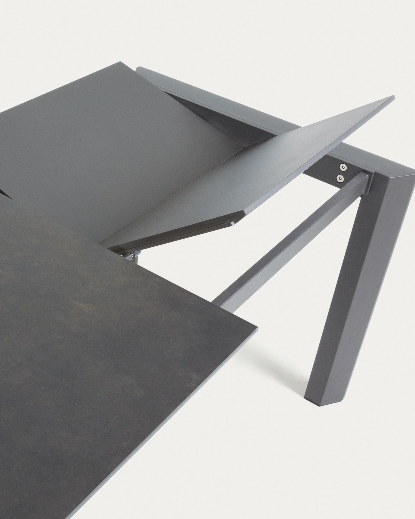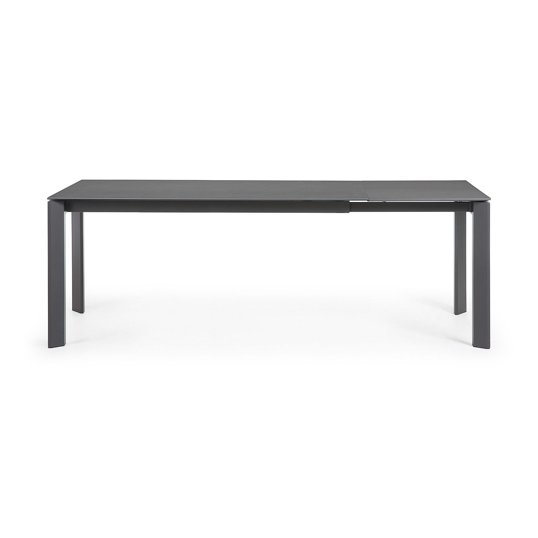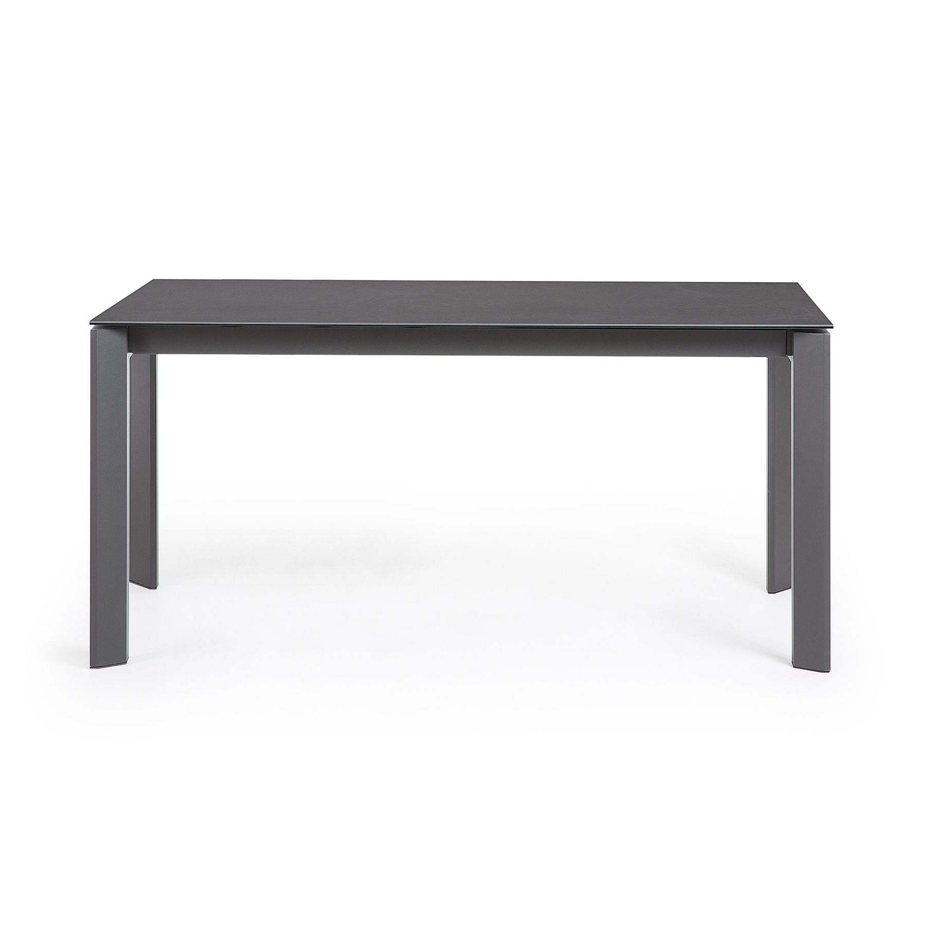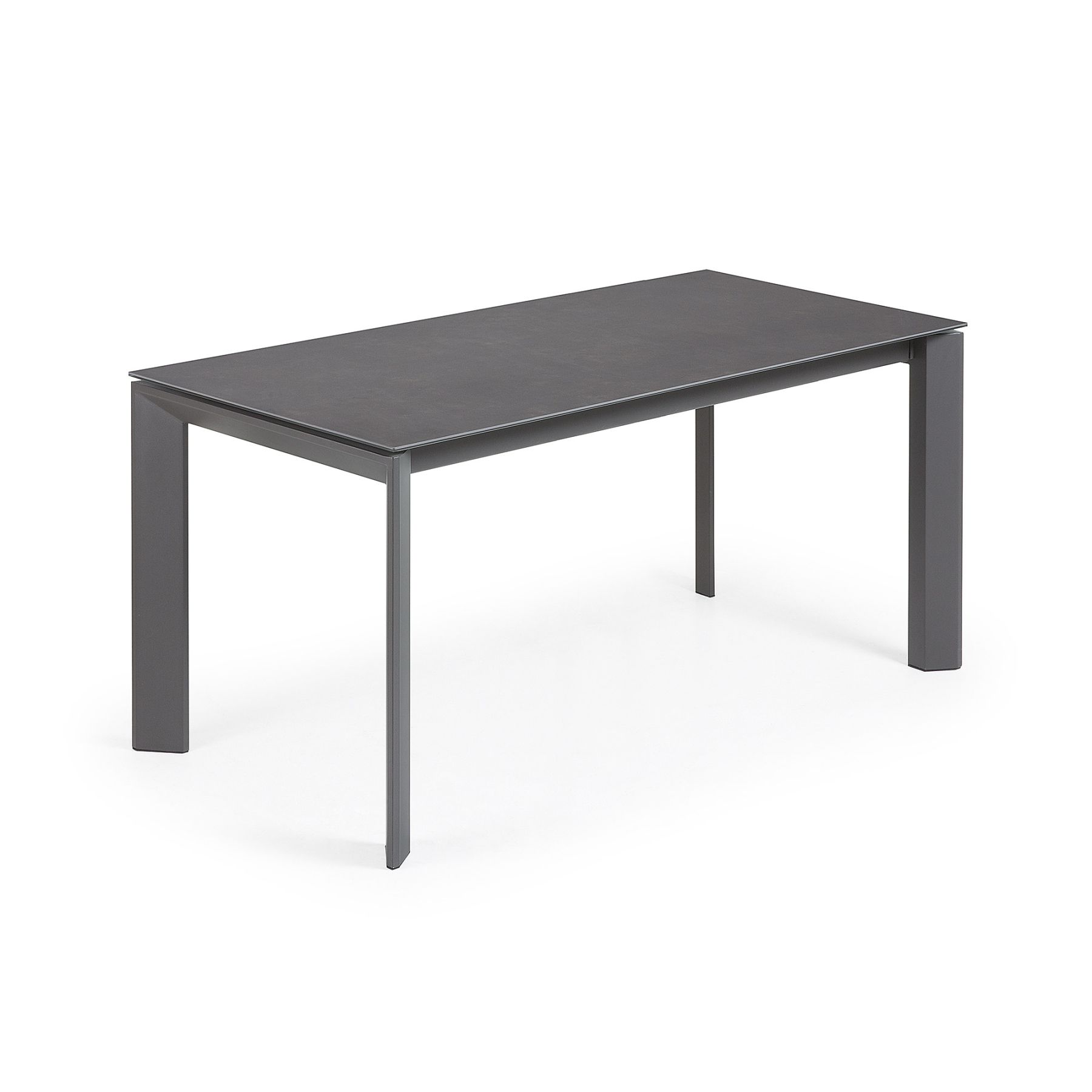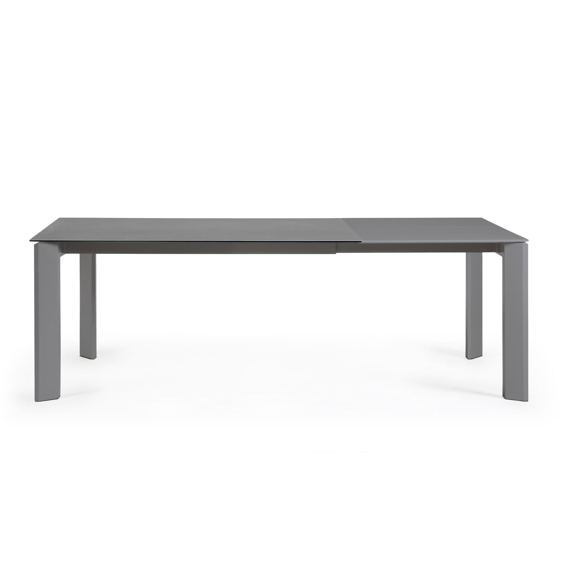 Стол Atta серый керамический от фабрики La Forma – безупречно спрятанная сложная конструкция в простом минимализме. Стол Atta – это победа инженерной мысли. Так мастерски спрятать выдвижной механизм и замаскировать его под тонкой столешницей смогут только профессионалы. Керамика – точно подобранный материал, который делает изделие эффектным, даже несмотря на принадлежность к минимализму. Стол прямоугольной формы. Столешница толщиной 1 см сделана из ударопрочной керамики графитового или коричневого цвета (для базовых моделей). Данный материал практичный, стойко переносит воздействие высоких температур, легко очищается от загрязнений. Выдвижной механизм находится справа. Чтобы раздвинуть стол, необходимо потянуть за ножки и достать сложенную пополам дополнительную панель (она из МДФ). Раздвижной механизм сделан из нержавеющей стали. Опора выполнена из металла, покрыта серой краской. Благодаря поддержке столешницы по всему периметру, обеспечивается стойкость к высоким весовым нагрузкам, правильное распределение веса. Размеры стола: длина – 120-180 см, 140-200 см или 160-220 см, ширина – 90 см, высота – 76 см.