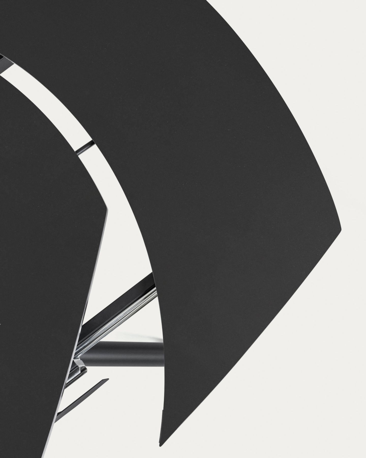 Раздвижной стол Yodalia 130 (190) x 100 cm стекло от фабрики La Forma – новые инженерные решения для максимального удобства. Раздвижной стол Yodalia – это ультрасовременная модель, которая впечатляет не только внешне, но и конструкционно. Эффектная матовая столешница и удобное расположение ножек – это плюсы, которые замечаешь первыми. Но как только происходит знакомство с поворотным раскладным механизмом, чувство восторга начинает зашкаливать. Это безусловно эргономичная модель, созданная для людей, привыкших жить с комфортом. Стол имеет форму обрезанного круга. Столешница сделана из закаленного стекла с черным матовым покрытием. Оно не оставляет отпечатков пальцев, легко очищается от загрязнений, ударопрочное. Опора металлическая, состоит из четырех пересекающихся друг с другом трубчатых ножек. Они покрыты черной матовой порошковой краской. Прочность металла гарантирует стойкость к высоким весовым нагрузкам (максимально допустимая – 100 кг). А крестовое расположение ножек – больше простора ногам. Раскладной механизм поворотный. Чтобы его привести в действие, достаточно повернуть столешницу вокруг своей оси по часовой стрелке. Боковые панели сами поднимаются и становятся на свои места. Число посадочных мест при полном расширении – 6. Размеры: длина – 130-190 см, ширина – 100 см, высота – 78 см. Вес стола составляет 99,8 кг. Потребуется сборка. Инструкция и крепеж входят в комплектацию. В коллекции Yodalia представлен также стол в керамической столешницей с имитацией под черный мрамор.