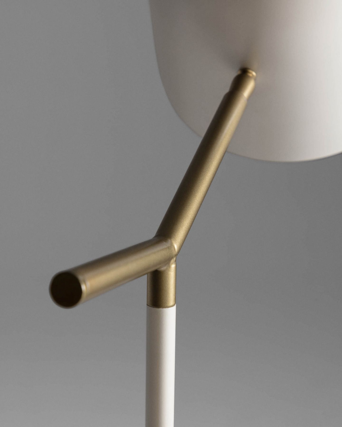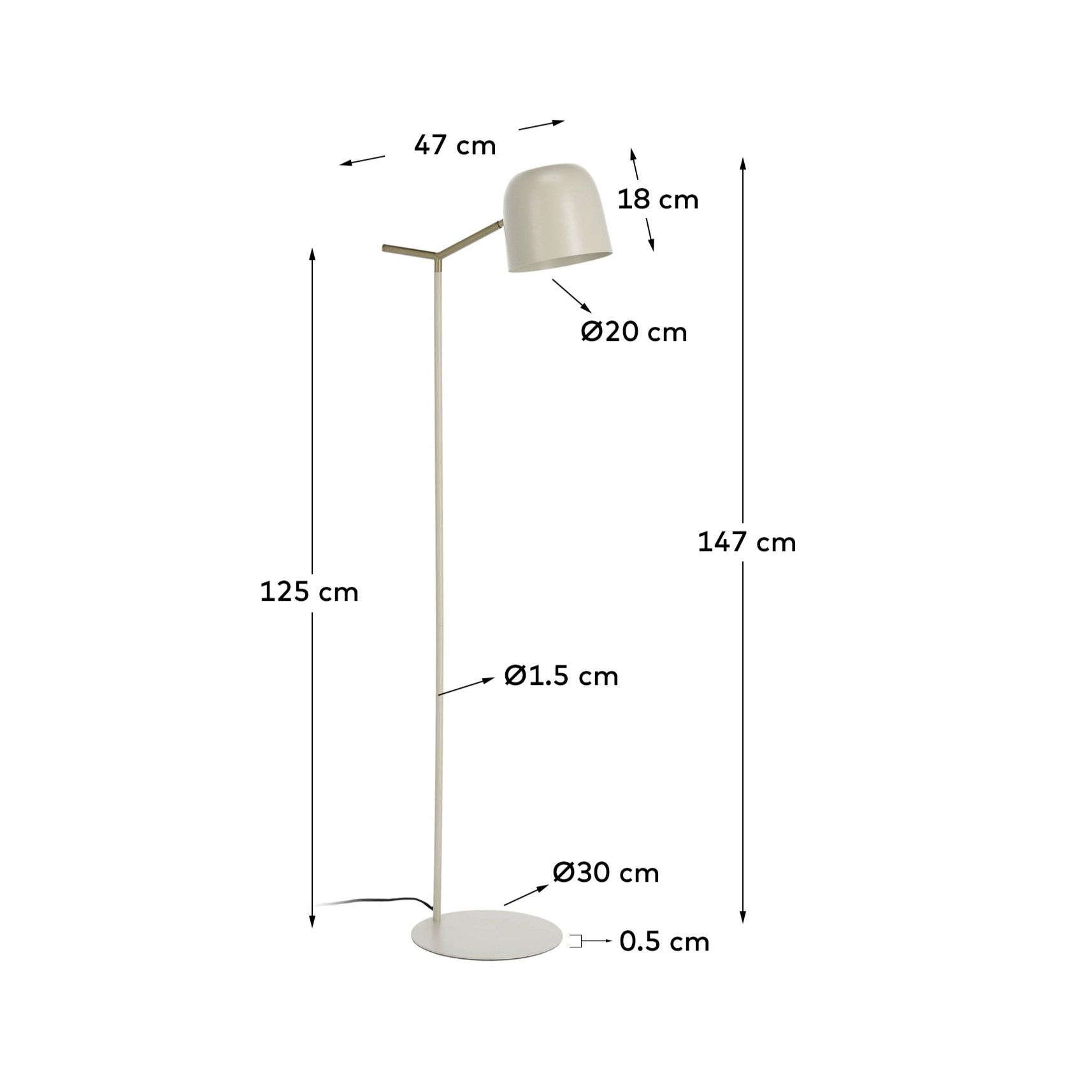 Торшер Alish от фабрики La Forma (ex Julia Grup) – дизайнерский свет для любой комнаты. Торшер Alish – это культовая дизайнерская лампа, которая добавит в ваш дом немного ретро-атмосферы. Модель имеет завершенный вид, она минималистичная и самодостаточная. Торшер подойдет для любой комнаты и станет полноценным украшением вашего интерьера. Позвольте Alish приветствовать вас в коридоре или добавить света в гостиной. Торшер полностью металлический, с бежевым матовым покрытием и гальваническим латунным. Широкое круглое основание диаметром 30 см обеспечивает хорошую устойчивость на любом напольном покрытии. К нему приварена трубчатая ножка диаметром 1,5 см, по которой к абажуру подведен кабель. Длина кабеля – 200 см, расстояние до напольного выключателя – 93 см. Абажур выполнен в форме ковша. Его высота – 18 см, ширина – 20 см. Для торшера подойдет энергосберегающая лампа с цоколем Е27 и характеристиками: максимальная мощность – 40 Вт, класс энергопотребления – Е-А++, максимальная энергоэффективность – A++, рекомендуемая форма – глобус. Размеры: ширина – 47 см, высота – 142 см, глубина – 30 см. Вес – 4 кг. Сборка легкая. В коллекции Alish также представлены настольный и настенный светильники.