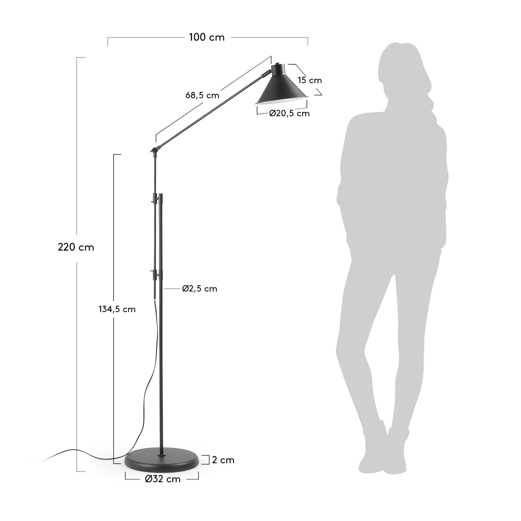 Торшер Odine от фабрики La Forma (ex Julia Grup) – промышленный минимализм и экономия пространства. Торшер Odine совершенно точно станет постоянным источником света в современной городской квартире. Его минималистичный дизайн и компактные габариты позволяют выбирать любое место для установки. Торшеру не нужно много площади – и это видно сразу. Матовый металл – еще одна значимая особенность данной модели. Она позволяет быть торшеру в тренде здесь и сейчас. Торшер полностью сделан из металла, который окрашен в черный цвет матовой порошковой краской. Ножка и рычаг имеют трубчатую форму. Ножка шириной 2,5 см соединена с рычагом таким образом, что поворот рычага обеспечивается на высоте 134,5 см. Абажур имеет колоколовидную форму, с диаметром нижней части 20,5 см. К нему через рычаг подведен кабель в черной пластиково оплетке. Его длина – 175 см. Расстояние между лампой и напольным выключателем – 40 см. К торшеру подходит энергосберегающая лампа с цоколем Е14. Для нее рекомендуются характеристики: максимальная мощность – 40 Вт, класс энергопотребления – Е-А++, максимальная энергоэффективность – A++. Размеры: ширина – 100 см, высота – 220 см, глубина – 32 см. Вес – 4,9 кг. Необходима небольшая сборка. В коллекцию Odine также включены настольный и потолочный светильники.