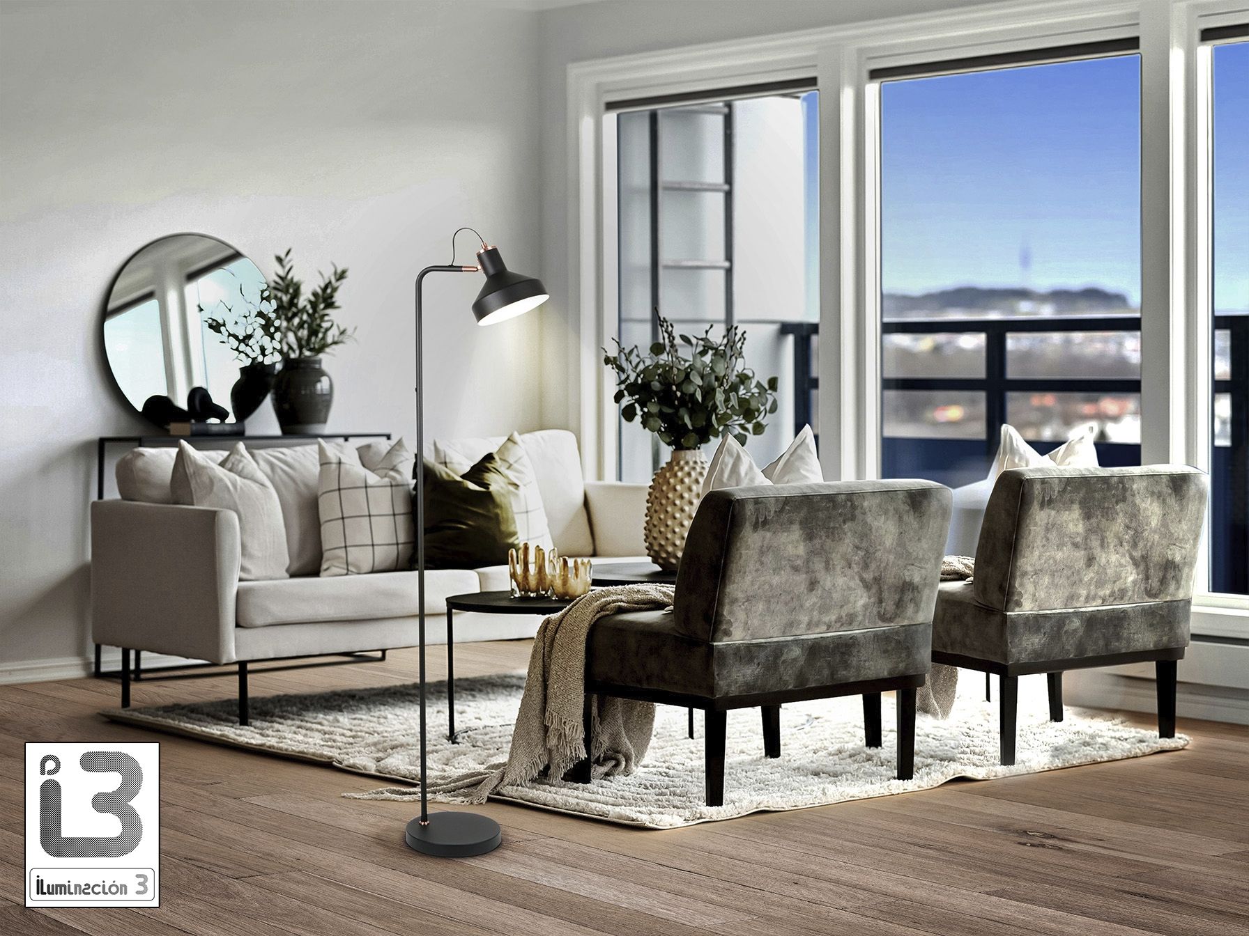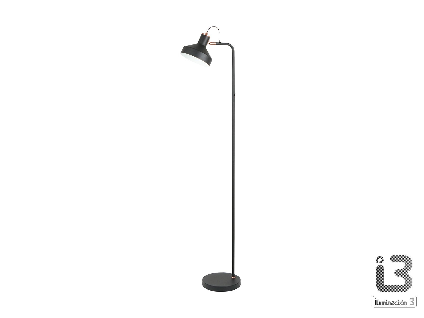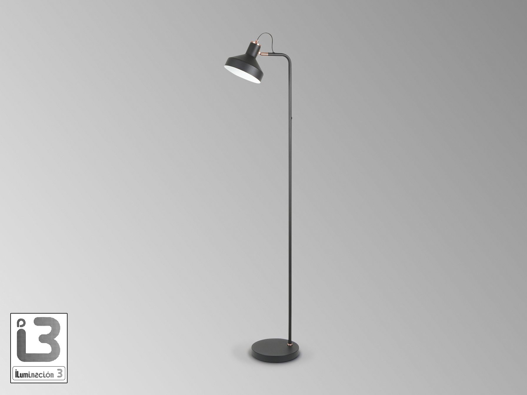 Торшер из металла, отделанный в матово-черный цвет, детали из сатинированной меди. Абажур с регулируемым наклоном. 1 E27