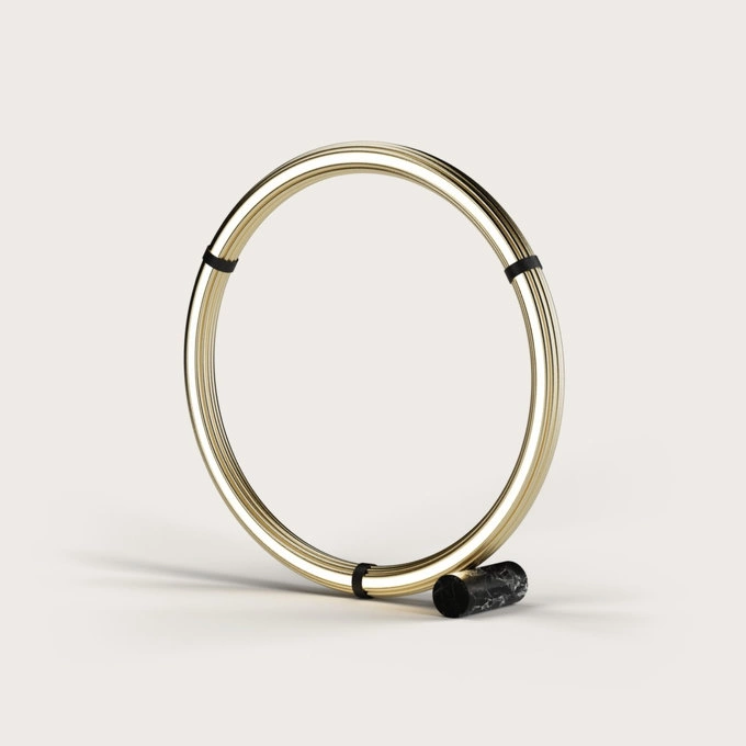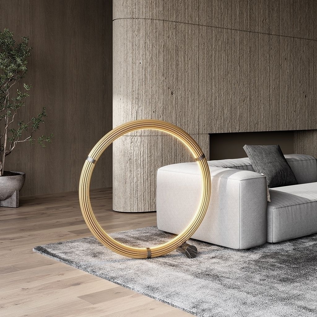 Напольный светильник, выполненный из акрила и металла в черной или золотой отделке.