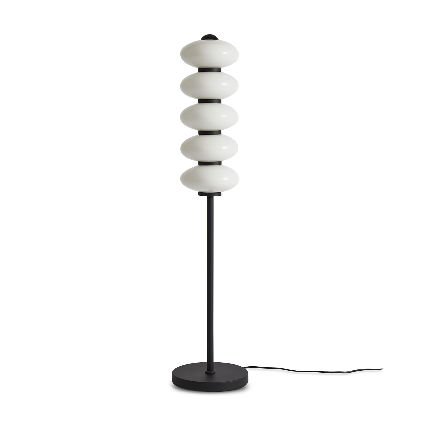 Материал арматуры — металл, цвет — черный. Напольный торшер оснащен LED-источником света. Цветовая температура 3000К.Индекс цветопередачи >82. Глянцевые белые стеклянные плафоны. Торшер высотой 1 метр. Сочетание ретро-дизайна и современных технологий: настенный светильник оснащен сенсорным управлением, а контрастное сочетание черной арматуры и белого стекла создает эффектную игру света.