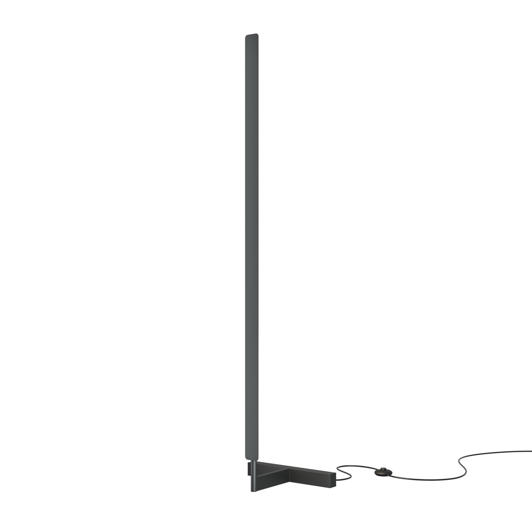 Металлическая арматура черного и белого цвета с шагреневым финишем. Источник света — LED. Конструкция бра предусматривает 2 источника света: поворотный спот для направленного освещения, подсветка вдоль корпуса для создания переотраженного света. Есть две кнопки на корпусе для управления. У торшера - только переотраженный свет вдоль всего корпуса. Угол рассеивания — 120°.