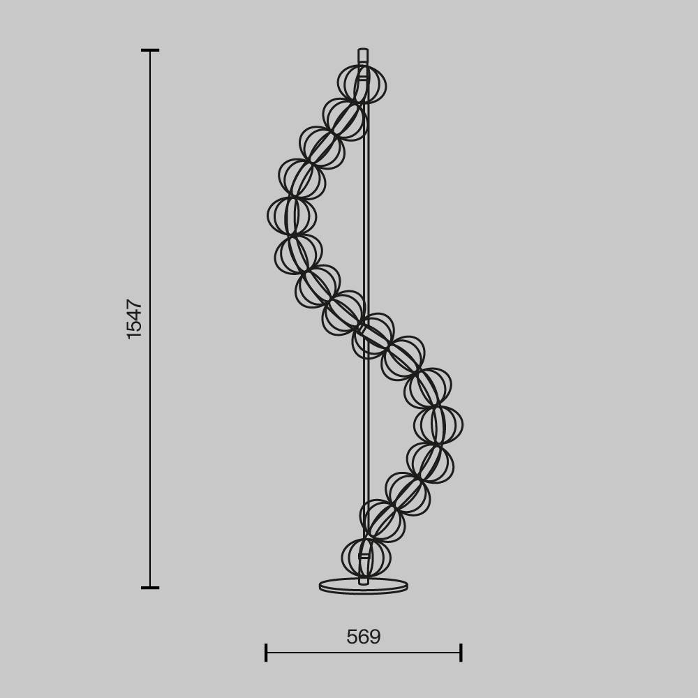 Арматура - металл, цвет - золото. Декоративные проволочные плафоны-сферы - ручная работа. Горизонтальные подвесы в двух вариатах монтажа - накладном и скрытом. Све товой элемент - силиконоваая трубка с LED-источником. Цветовая температура 3000К.