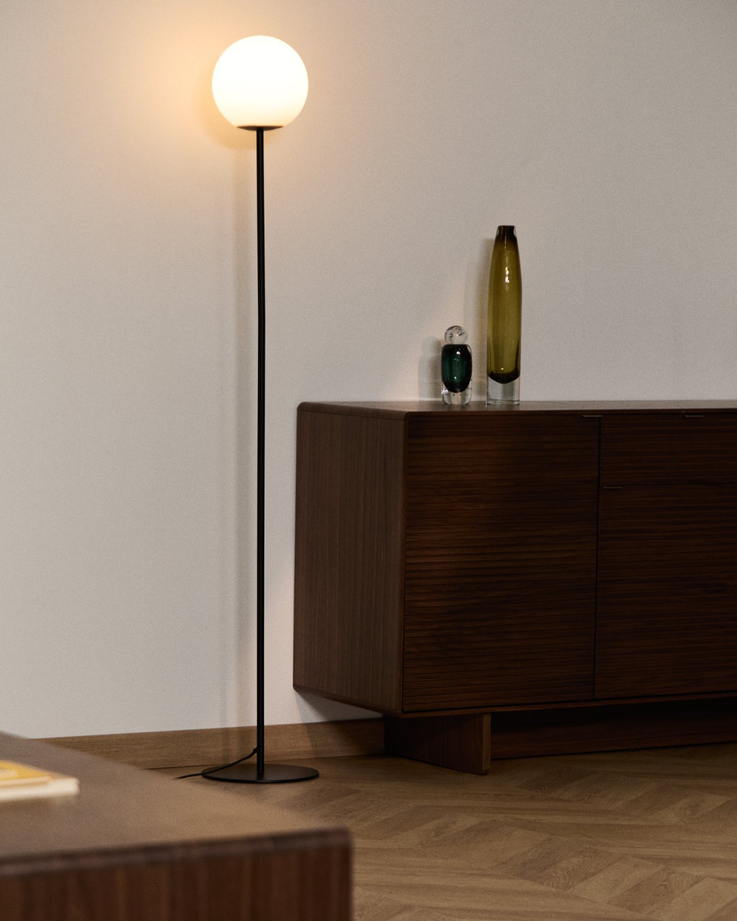 Brisia сочетает геометрию и элегантность в современном дизайне, отличающемся балансом материалов и форм. Корпус из черного металла придает изысканность, а сферический матовый стеклянный плафон смягчает свет, создавая обволакивающее и уютное освещение. Универсальный дизайн позволяет легко интегрировать светильник в различные пространства, добавляя индивидуальности и стиля. Светильник совместим с лампами E27 мощностью до 25 Вт (приобретаются отдельно).