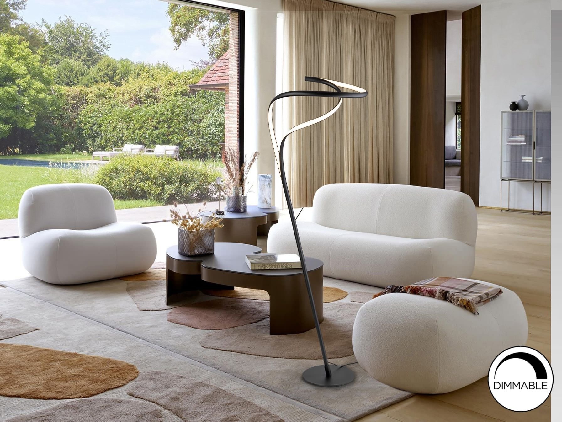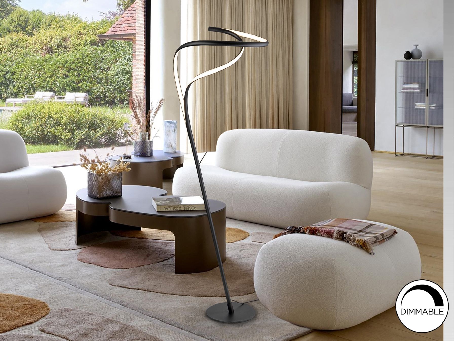 Напольный светильник из металла и алюминия с матово-черной отделкой, обработанной пескоструйным аппаратом. Рассеиватель из опалового силикона. Светодиод 39 Вт. 2044 лм. 3000 К. С РЕГУЛИРОВКОЙ ЯРКОСТИ