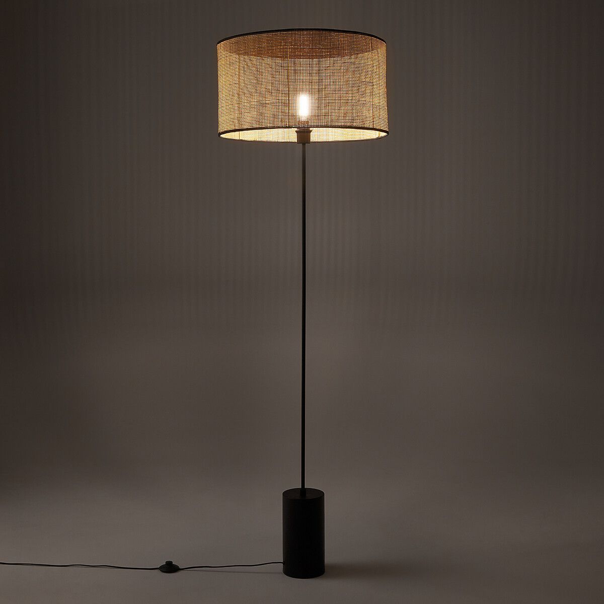 Вытянутая форма, цилиндрический цоколь и абажур из плетеного материала с черной окантовкой, металлическая ножка с черным матовым покрытием... Торшер Cara — эксперт в области декоративных материалов!