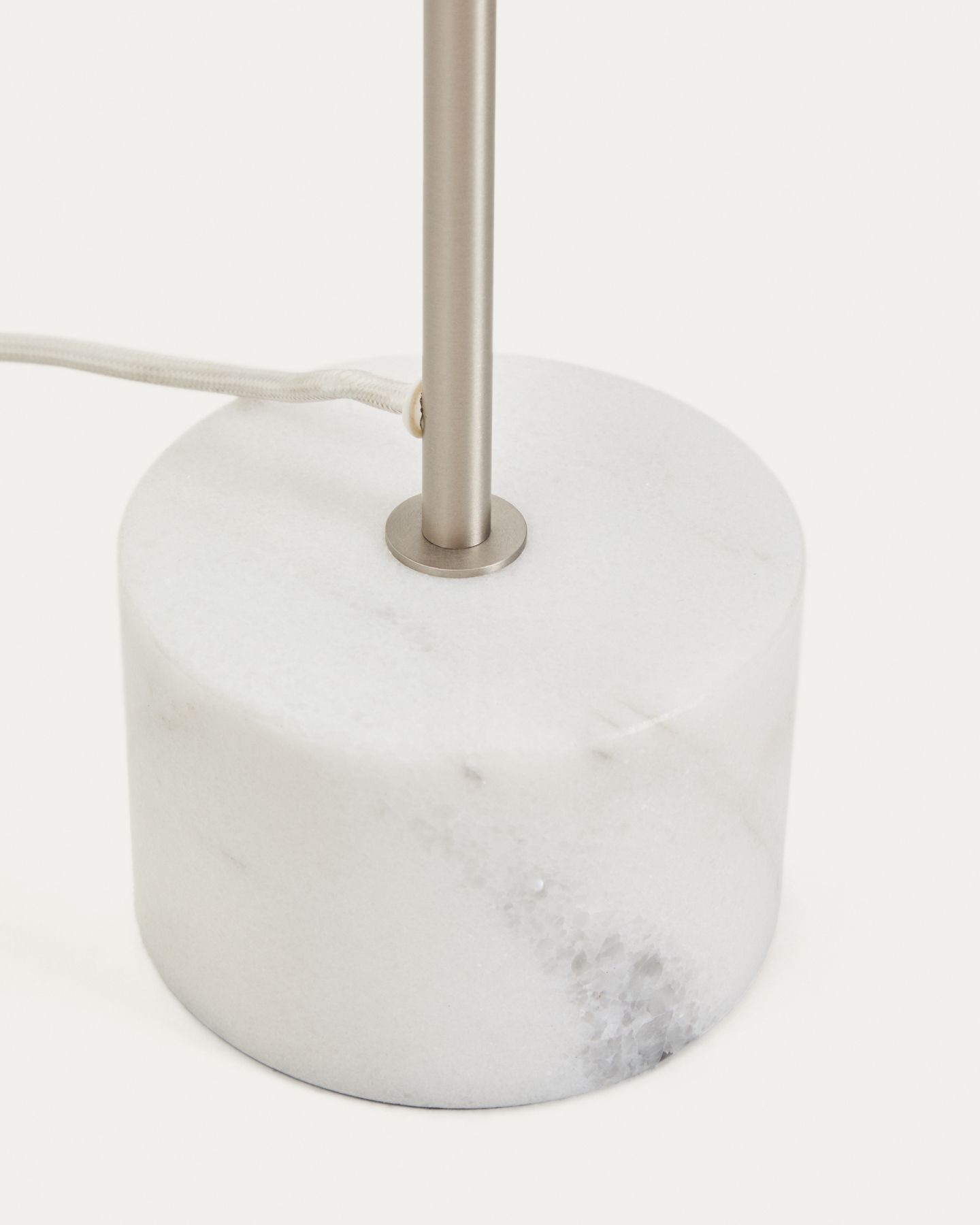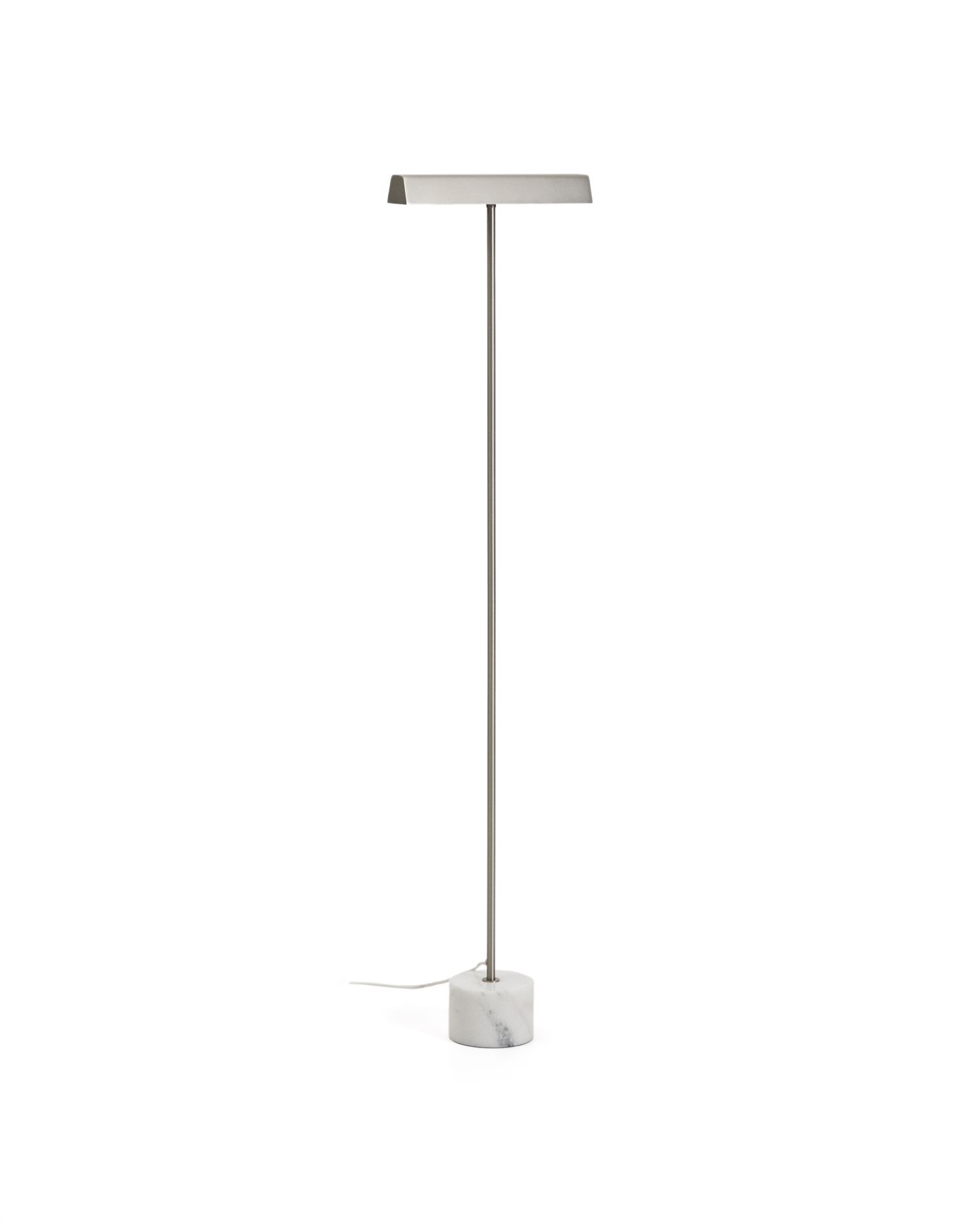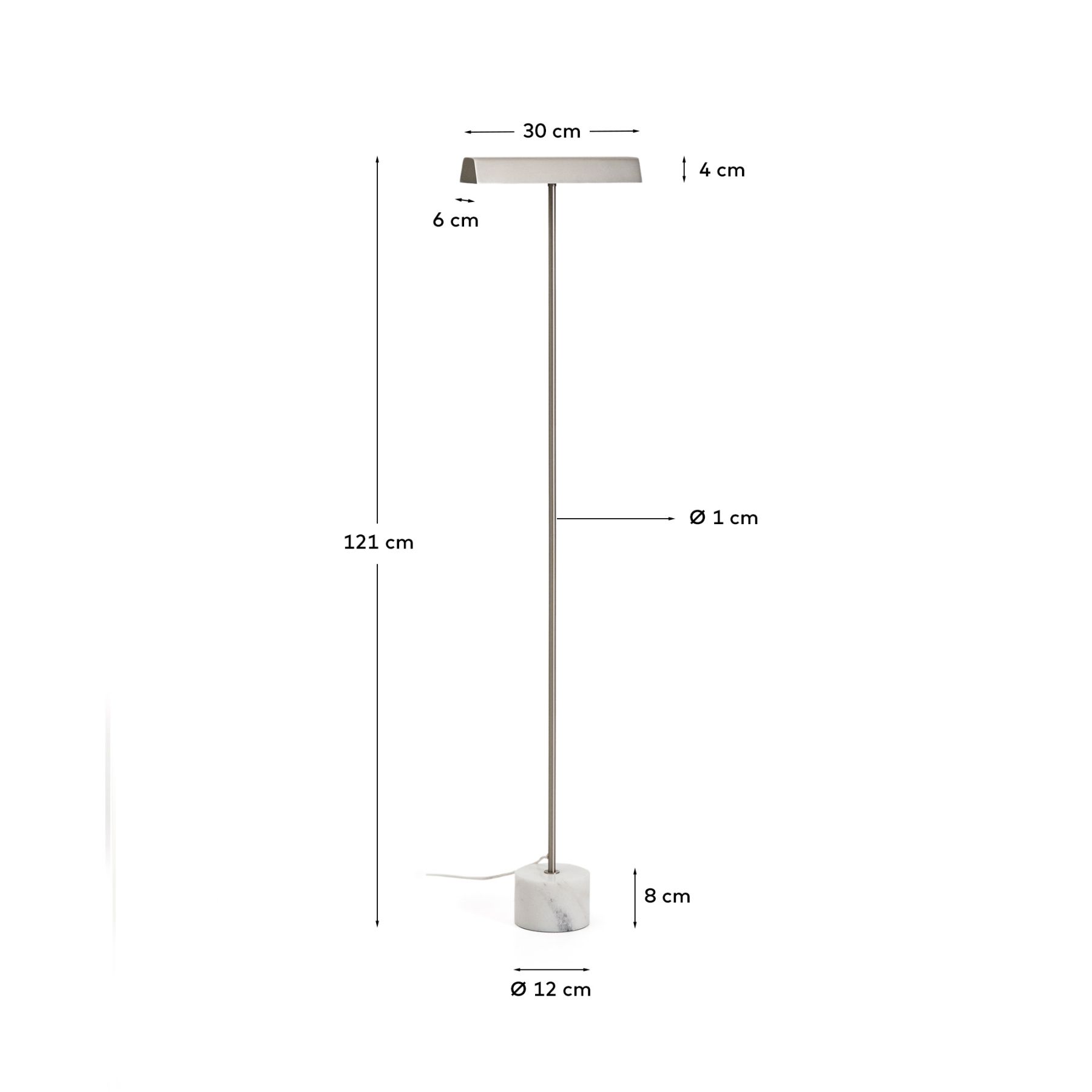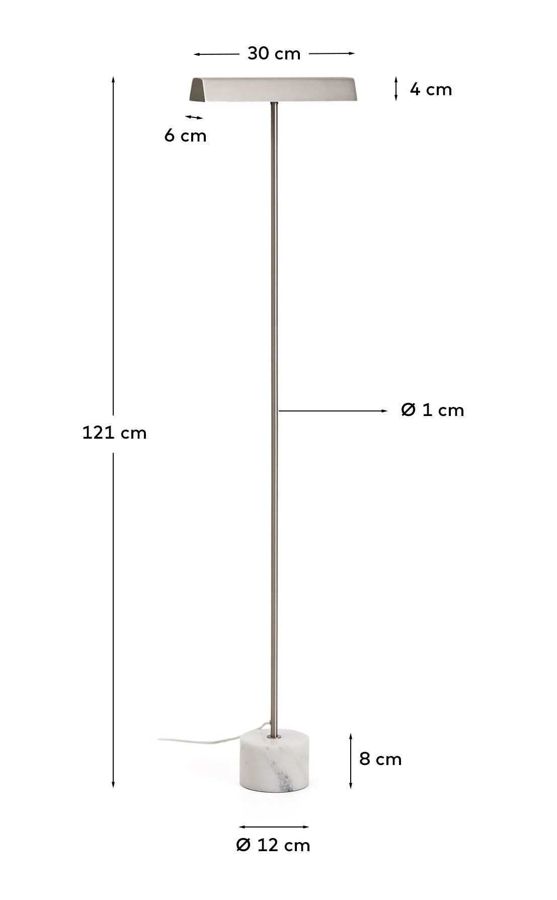 Напольный светильник из матового металла. Основание из мрамора, благодаря чему каждый светильник будет уникальным, с уникальными оттенками и текстурами. Совместим с лампами G9. Продаётся отдельно. Провод с мягкой и гибкой внешней оболочкой предотвращает спутывание и облегчает использование.