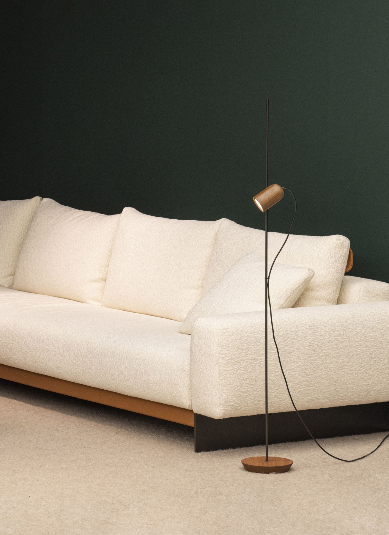 Этот дизайн сочетает в себе металлический корпус с латунной или графитовой отделкой, точечный светильник и основание из дерева грецкого ореха, дуба или черного ясеня, материала, подчеркивающего естественность и теплоту света. Лампа воплощает в себе оригинальную идею на основе магнита, которая позволяет легко фокусировать и направлять свет.