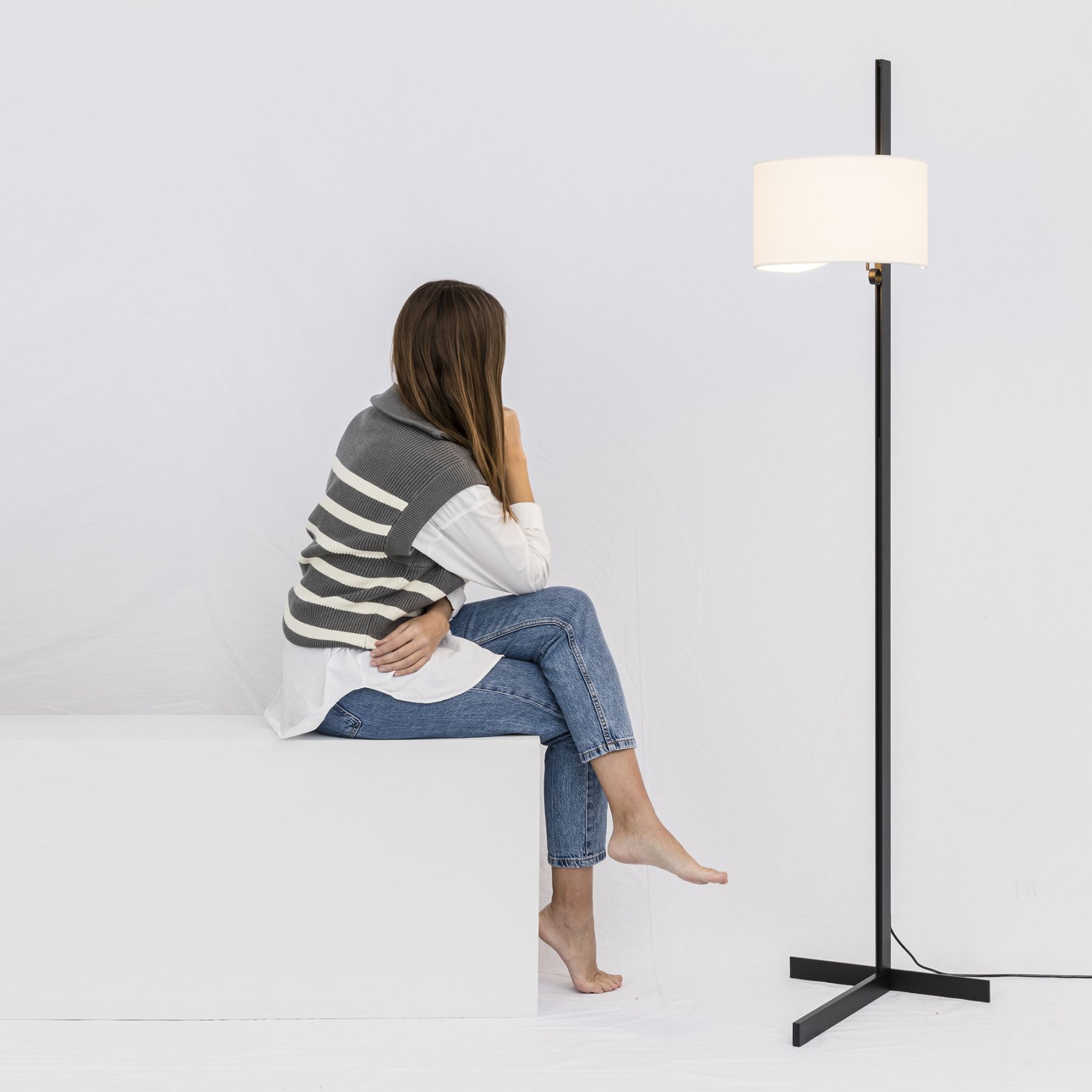 STAND UP отличается оригинальной формой экрана, который идеально сочетается с минималистичной черной структурой торшера. Белый цветной экран и свет можно регулировать по высоте. Основание в форме буквы Т придает молниеносной стабильности и индивидуальности.