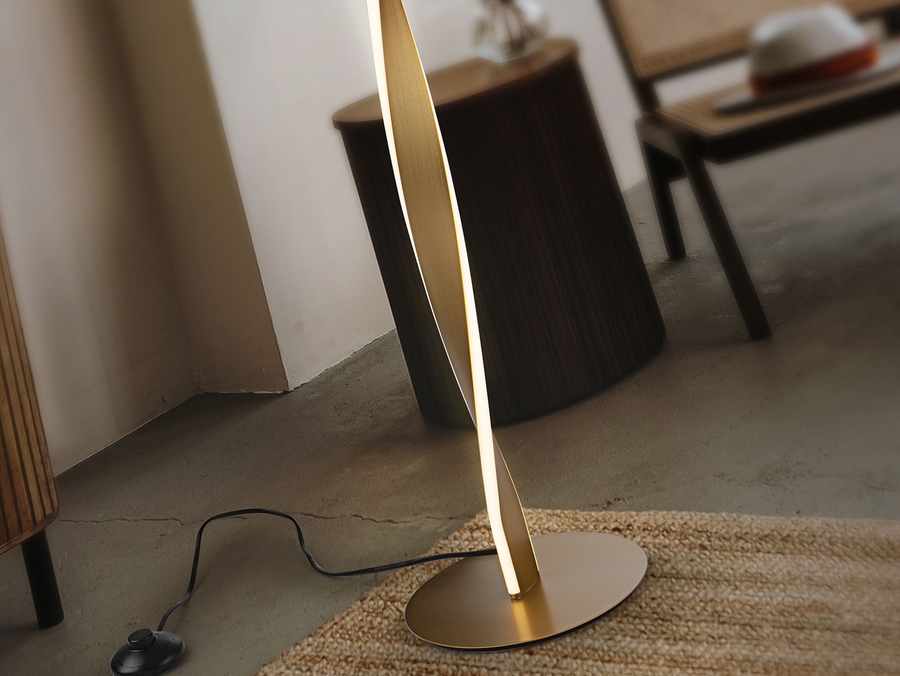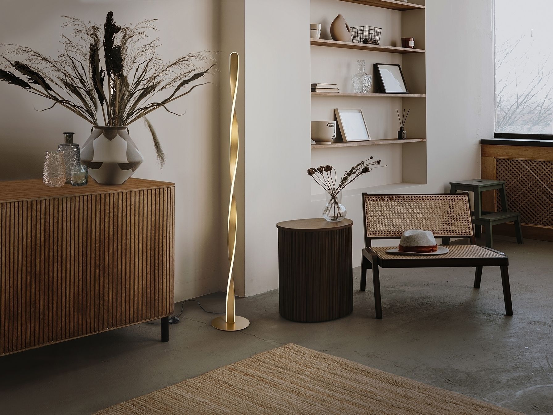 Торшер из металла с матовой золотой отделкой. Опаловый силиконовый рассеиватель. 40Вт, 2600лм, 3000к