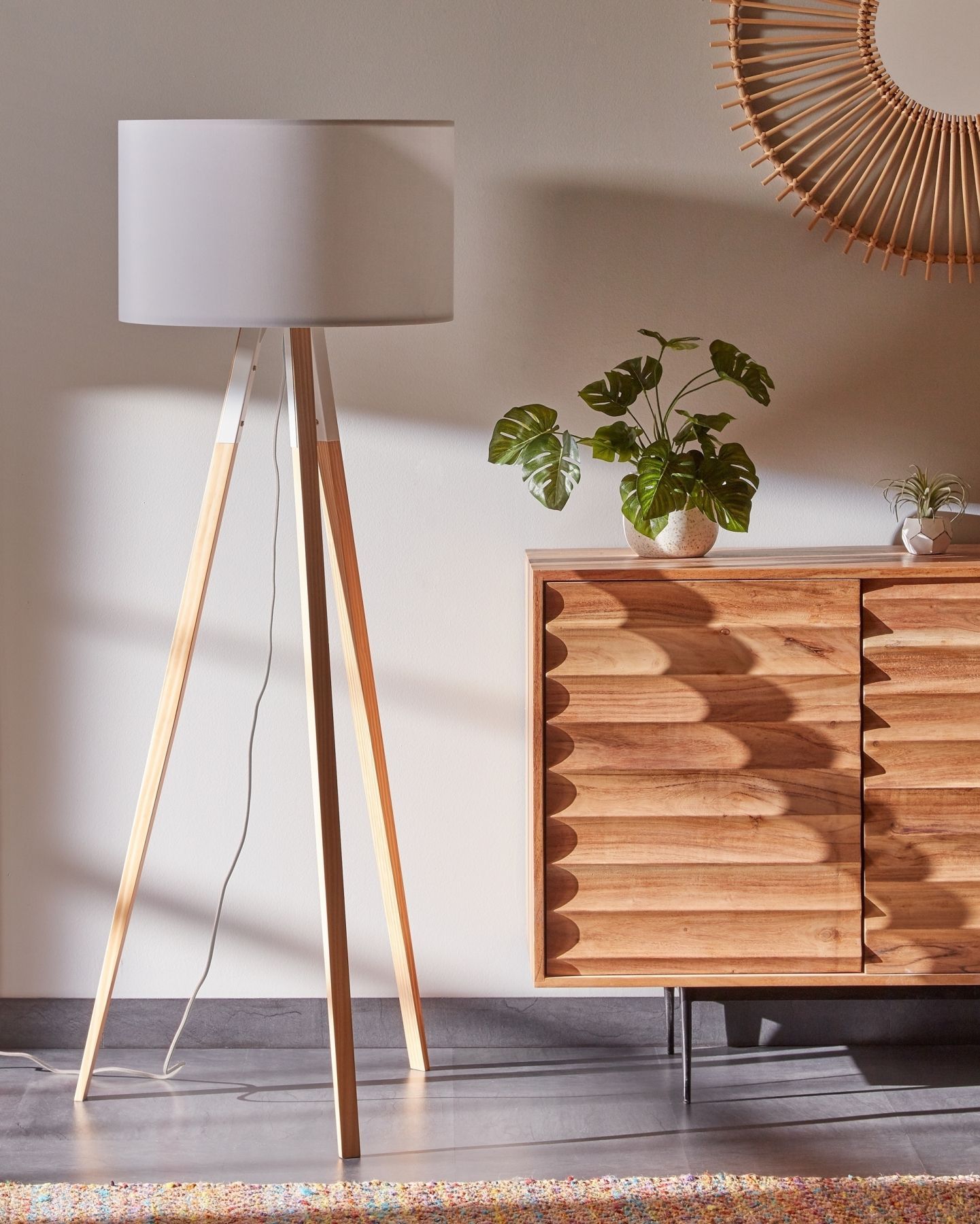 Размеры торшера: ширина – 57 см, высота – 155 см, глубина – 50 см. Вес – 3,4 кг. Потребуется небольшая сборка. В коллекцию Uzagi также включены аналогичные торшеры с металлической треногой, белого и черного цвета.
