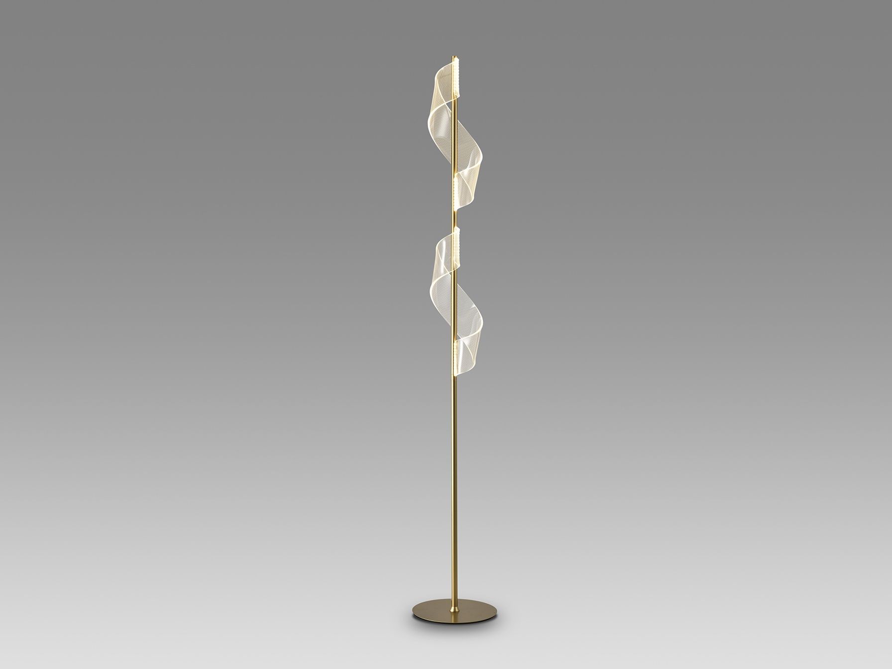 Напольная лампа из металла и алюминия, матовое золото. Рассеиватели из литого метакрилата с микропечатью. Светодиод 18 Вт, 1150 лм, 3000 К.