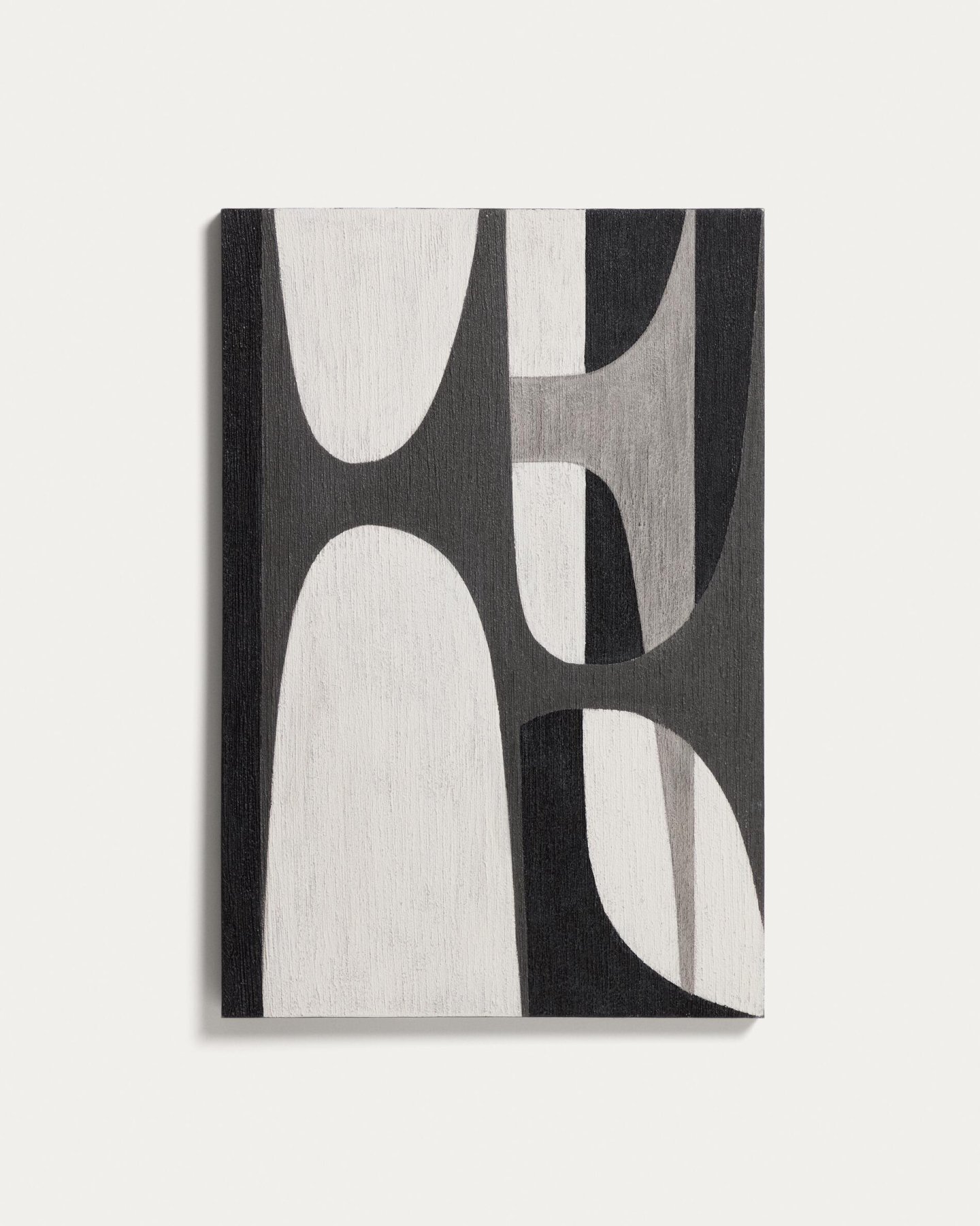 Картина Онуре исследует баланс между черным и белым с помощью округлых форм, которые перекрываются и вступают в диалог друг с другом. Композиция построена на контрастах света и тени, которые добавляют глубины и выразительности. В комплект входит D-образное крепление для подвешивания на стенах разного типа.