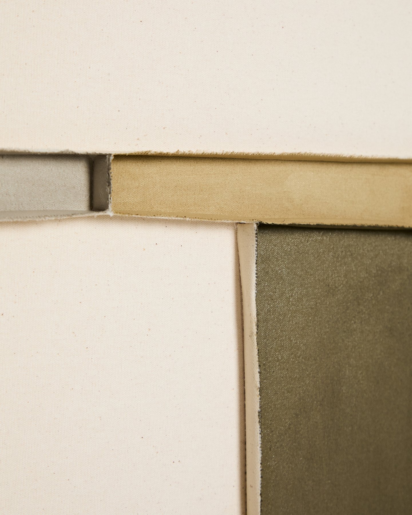 Коллекция Deravia представляет собой абстрактные картины, в которых рельефы, выполненные в технике льняной вышивки, сочетаются с палитрой мягких зеленых и нейтральных тонов, которые вводят цветовые нюансы, не нарушая баланса всей композиции, и привносят в пространство ощущение спокойствия. Каждая картина поставляется в раме с D-образным креплением, подходящим для любого типа стены.