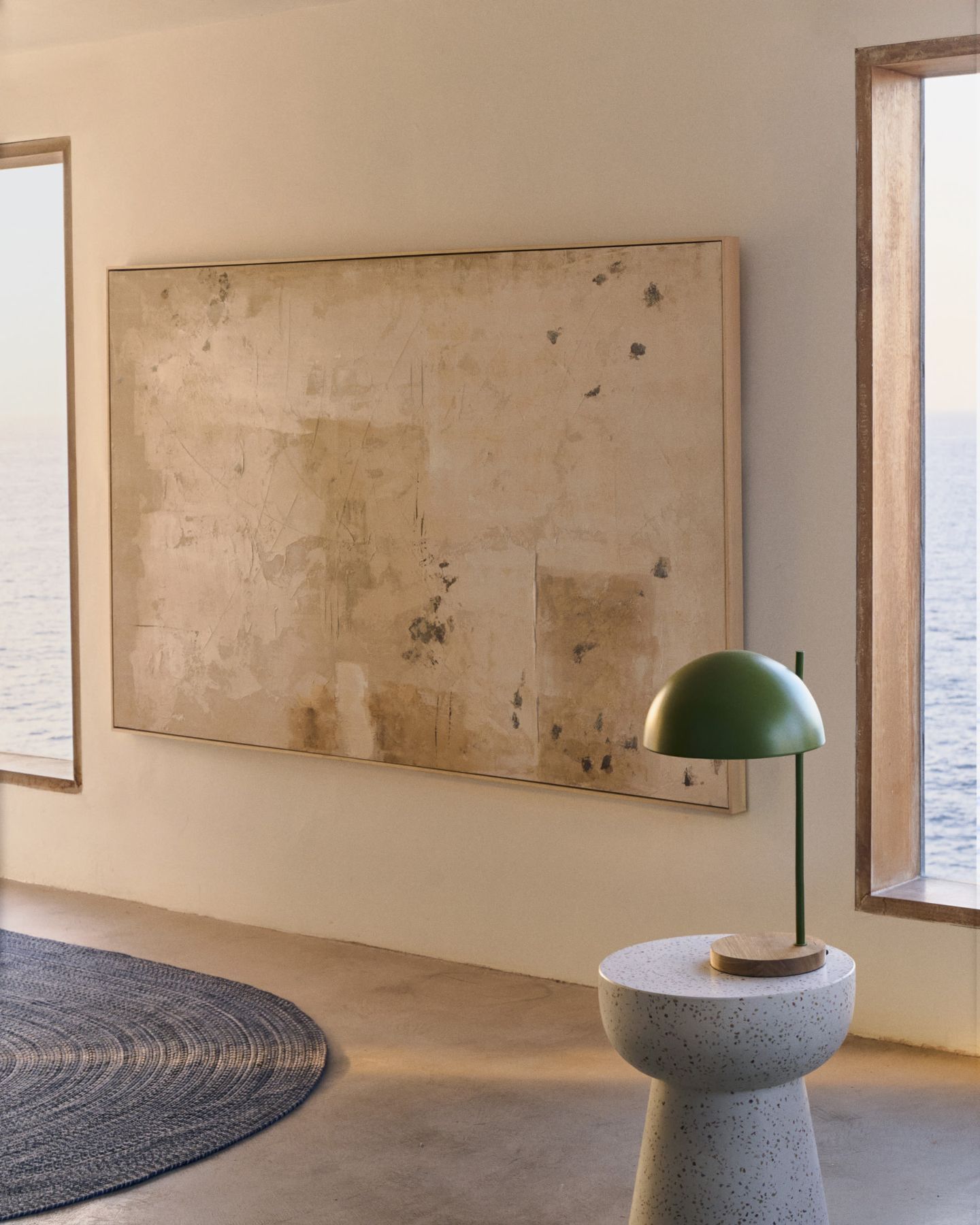 Картина Silpa состоит из абстрактных цветовых пятен нейтральных тонов, таких как серый, бежевый и кремовый, на нейтральном фоне. Эта коллекция передает спокойствие и идеально подходит для всех типов помещений.