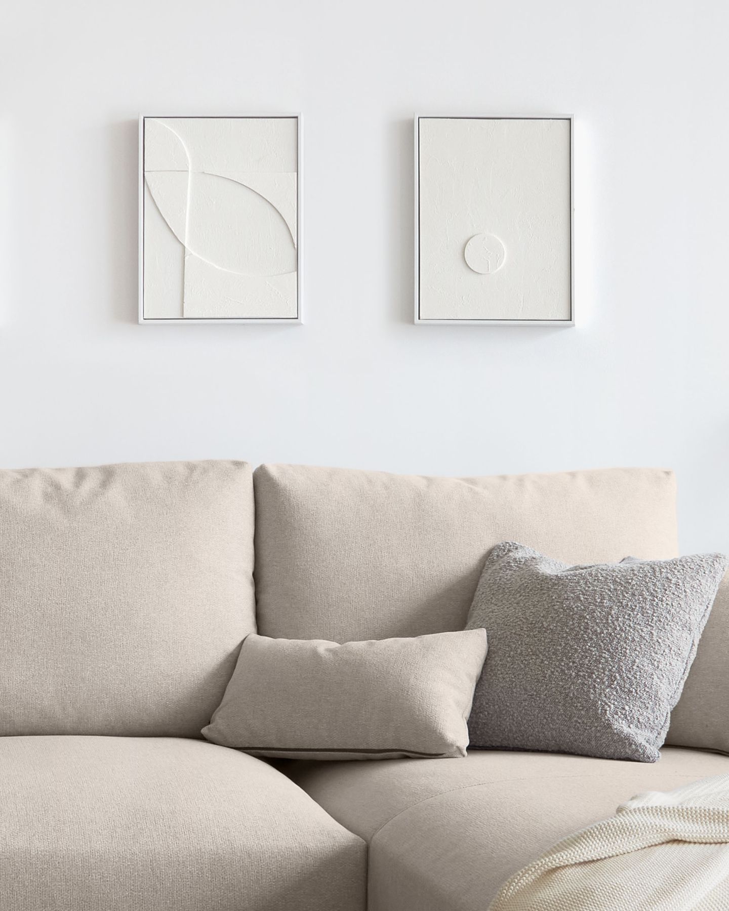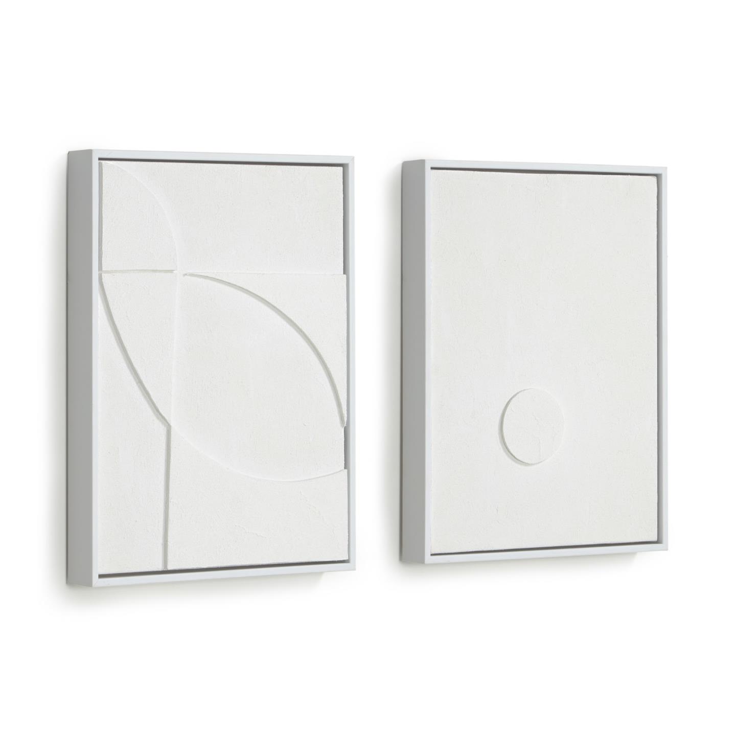 В набор Brunella входят две картины с иллюстрациями в рельефной форме. В одном круг на однотонном фоне, в другом лист, представленный геометрическими фигурами.