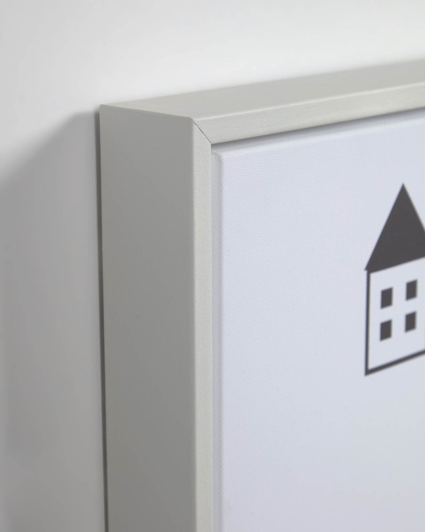Картины имеют деревянные рамы (МДФ с низким уровнем выбросов формальдегида E0), которые окрашены в серый цвет. Рисунки печатные, нанесены на холст.