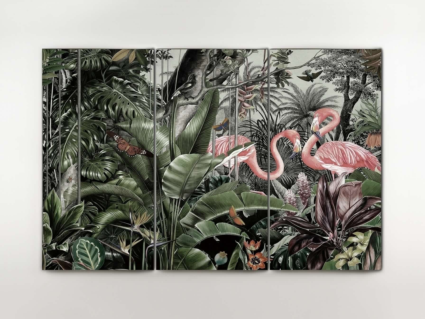 Фотография-триптих, напечатанная на закаленном стекле. Подвесные изделия из железа включены.