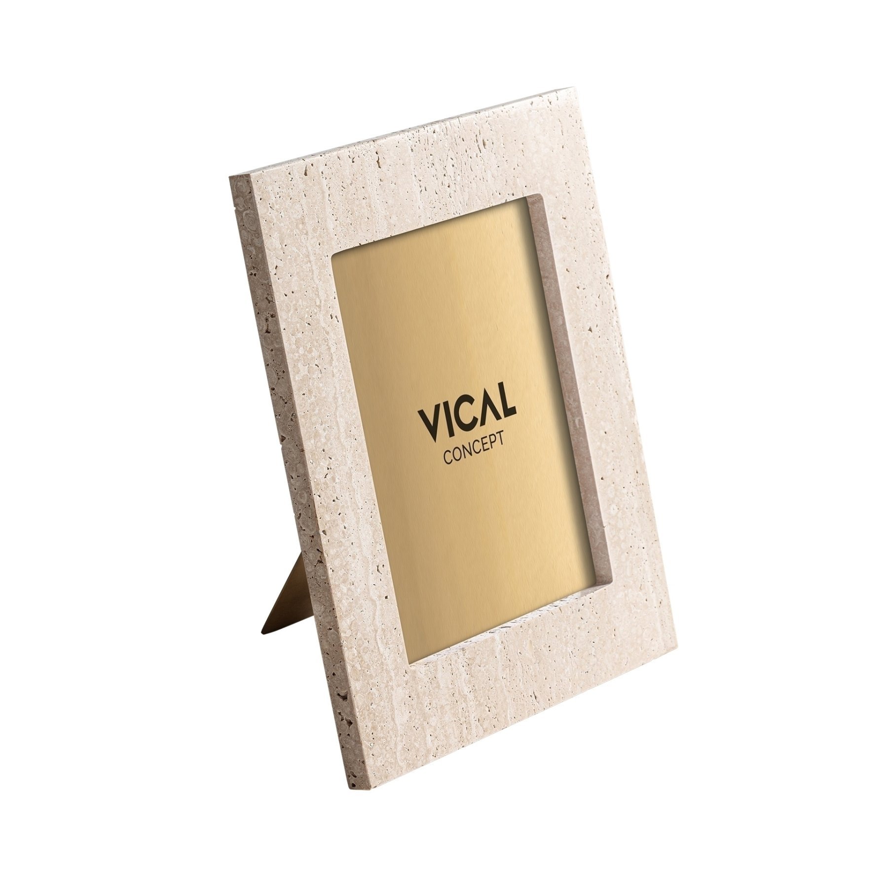Фоторамка бежевого цвета в стиле арт-деко. Изготовлен из бронзы в сочетании с мрамором и акрилом.