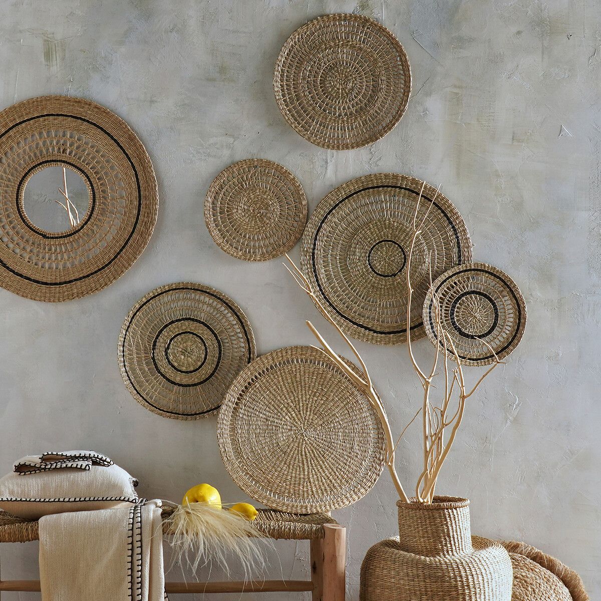 — Комплект из 3 настенных украшений из плетеного гербария.