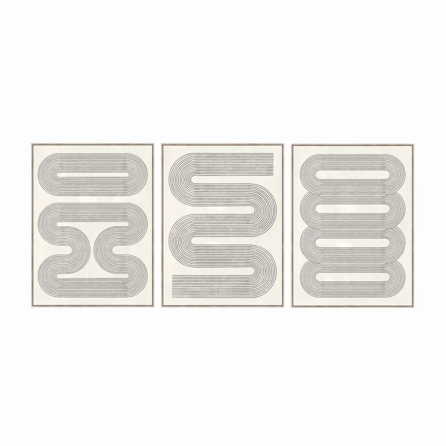 Серые тона с бежевыми акцентами придают постерам элегантность, а геометричный дизайн добавляет современности и динамики. Внушительные размеры делают набор отличным выбором для акцентной стены, придавая глубину и характер любому помещению.