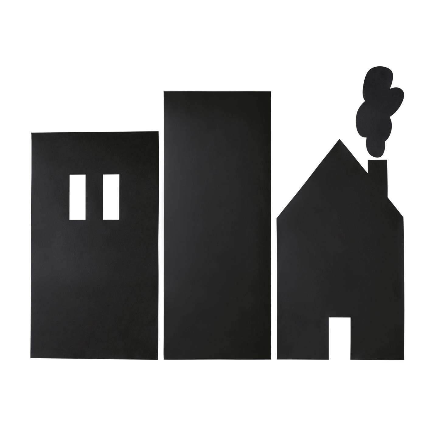 Набор состоит из трех виниловых наклеек черного матового цвета. Они легко клеятся на стену с любым покрытием. На наклейках легко рисовать мелом и также просто очищать поверхность влажной тряпкой.