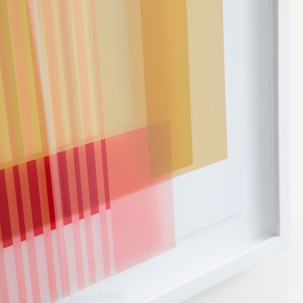 Сочетание этих линий и геометрических форм создает новую хроматическую гамму и придает дизайну глубину. Живая композиция: при движении глаз и изменении источника света возникают новые цветовые вариации.