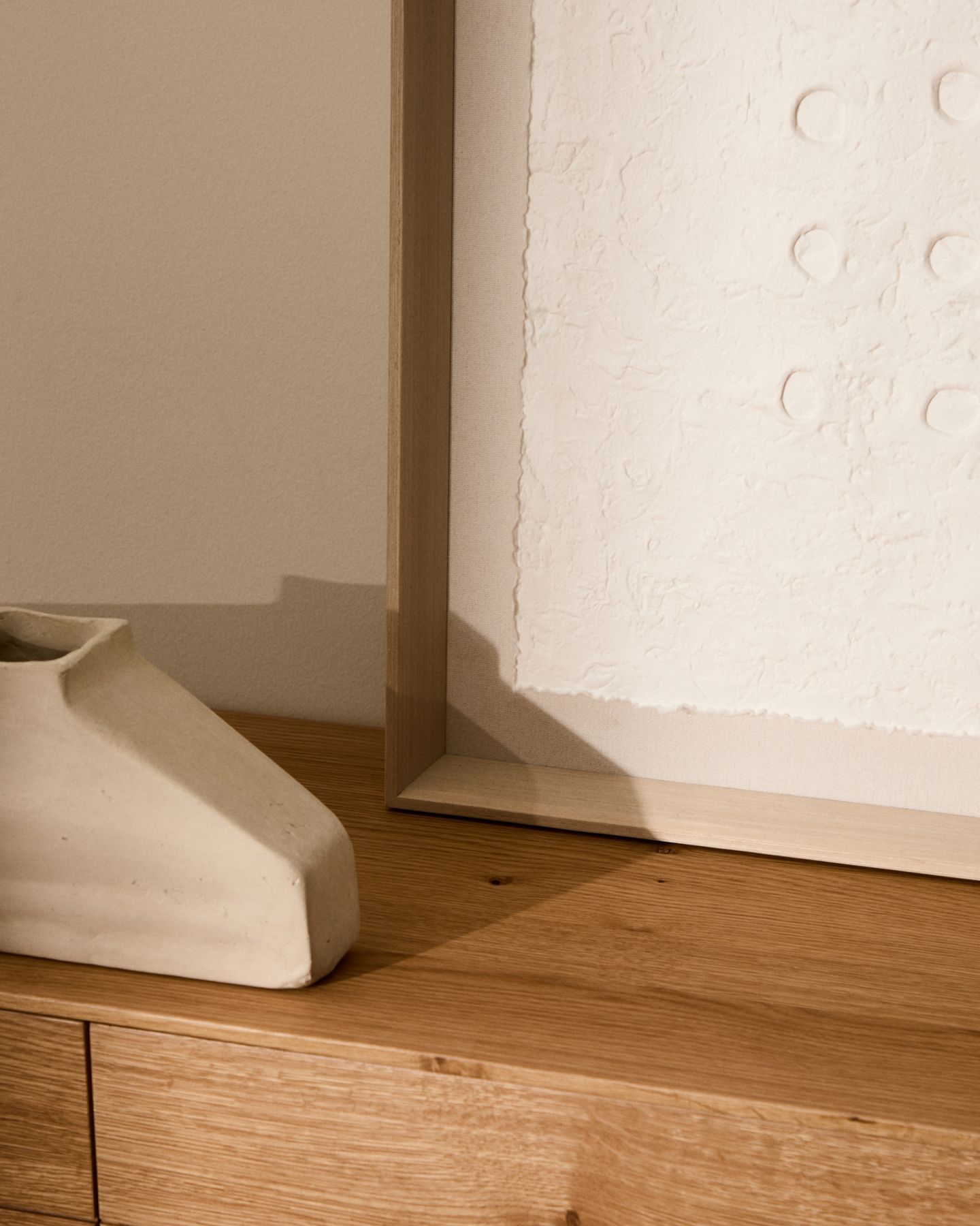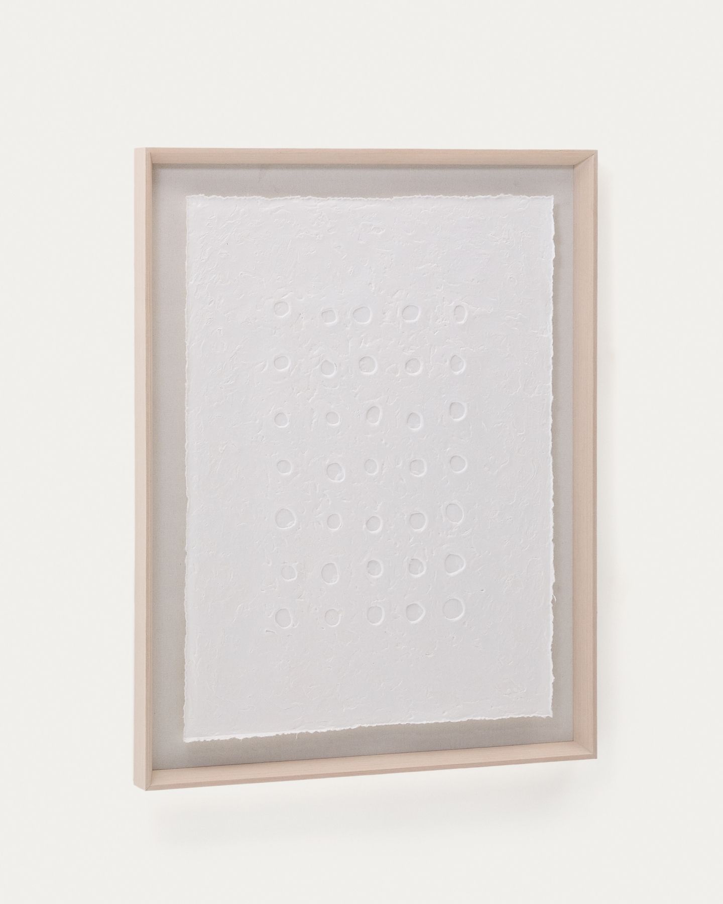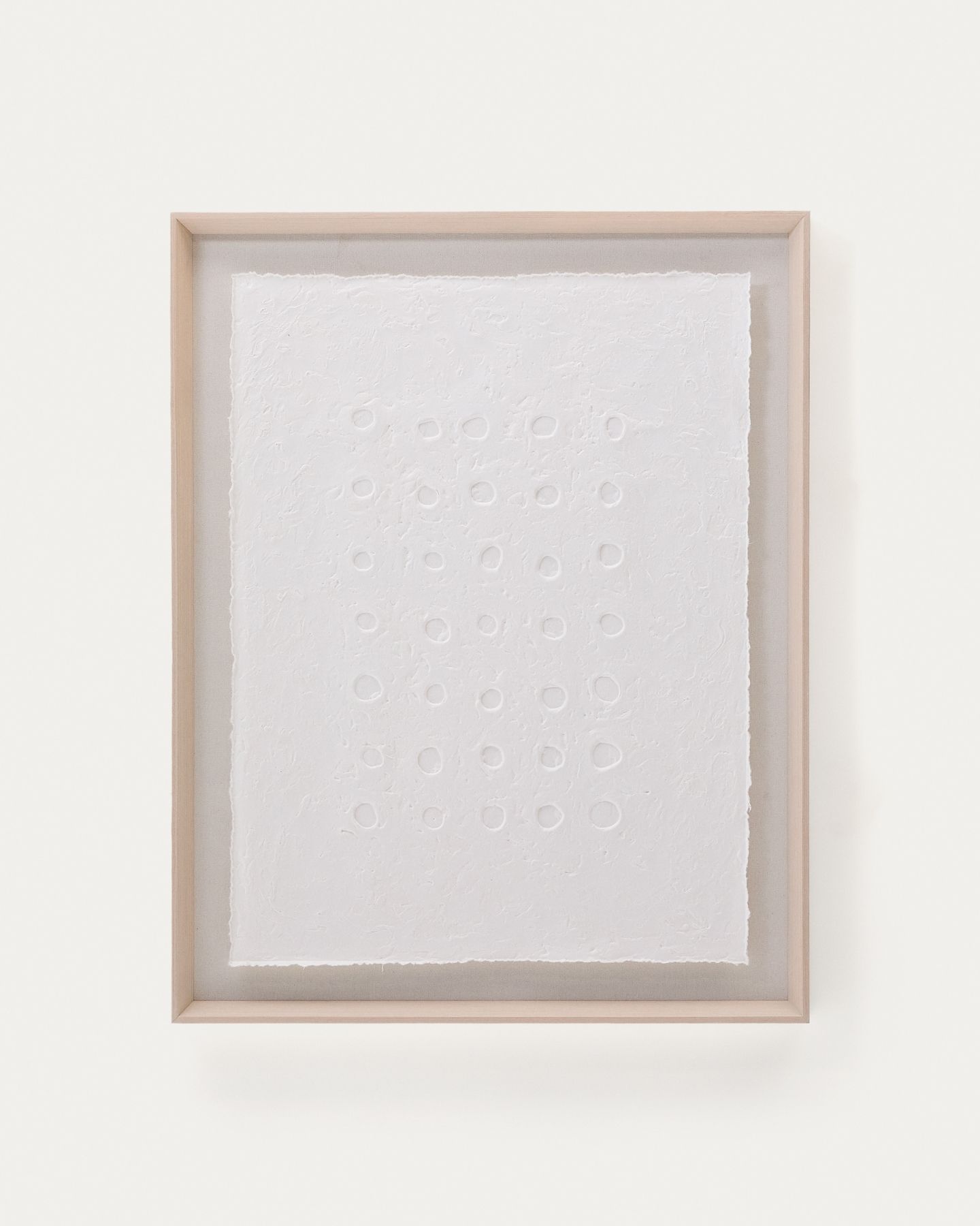 Картина Olvin выполнена из белой переработанной бумаги с уникальными рельефными узорами ручной работы, которые отличаются своим аутентичным характером. Каждый элемент является результатом техники тиснения, которая создаёт узор из точек и кругов по центру, добавляя дизайну текстуру и объём. Благодаря чистому покрытию картина идеально подходит для придания любому пространству художественного и оригинального вида. Она также прекрасно сочетается с другими картинами из коллекции, позволяя создавать гармоничные визуальные композиции, полные характера. Каждый рельеф отражает преданность своему создателю, что делает эту работу декоративным аксессуаром, сочетающим экологичность и современный дизайн.