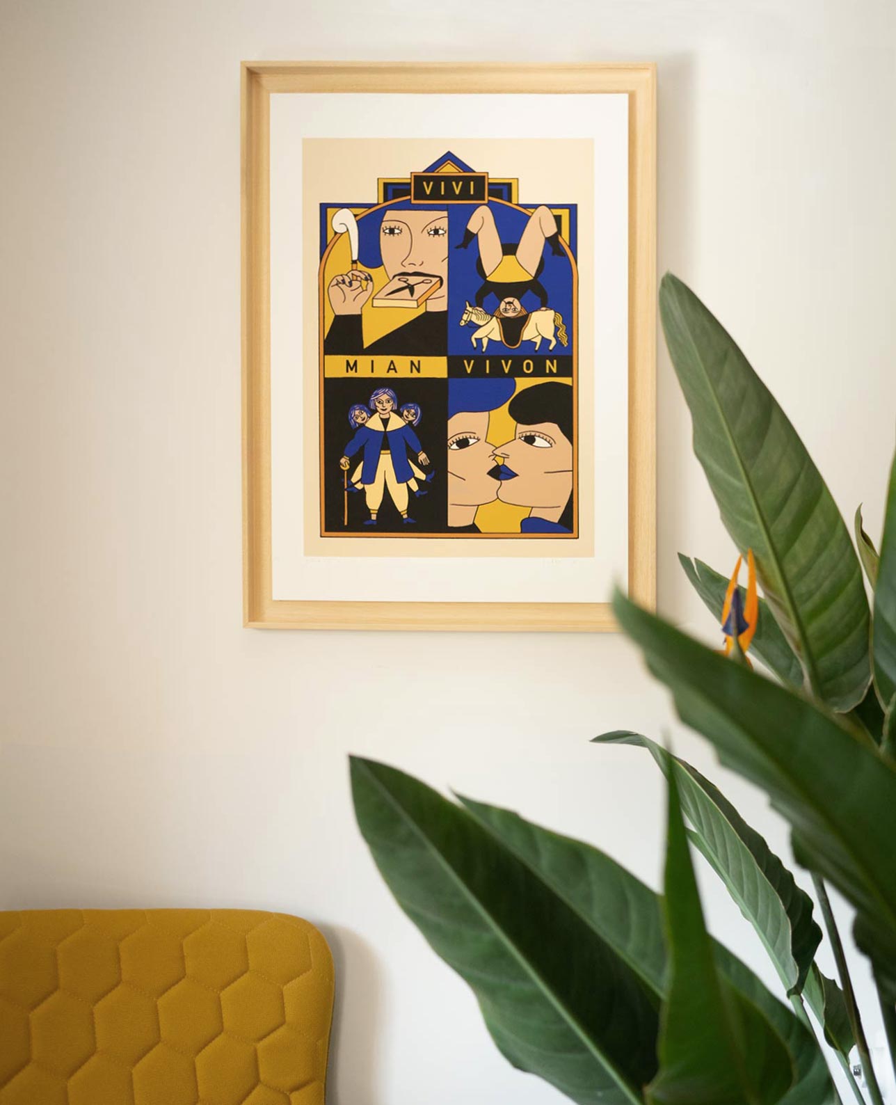 Эти принты , напечатанные на бумаге Matt Fiber Hahnemühle плотностью 200 грамм в технике Жикле, входят в ограниченный тираж, поэтому каждый из них художник лично подписал и пронумеровал.