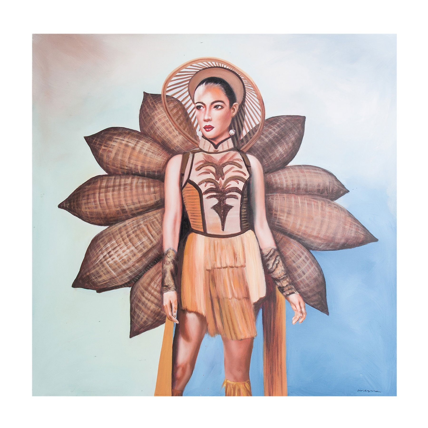 Прямоугольное полотно Olivia, разноцветное, выполненное вручную в современном стиле. Изготовлен из холста.