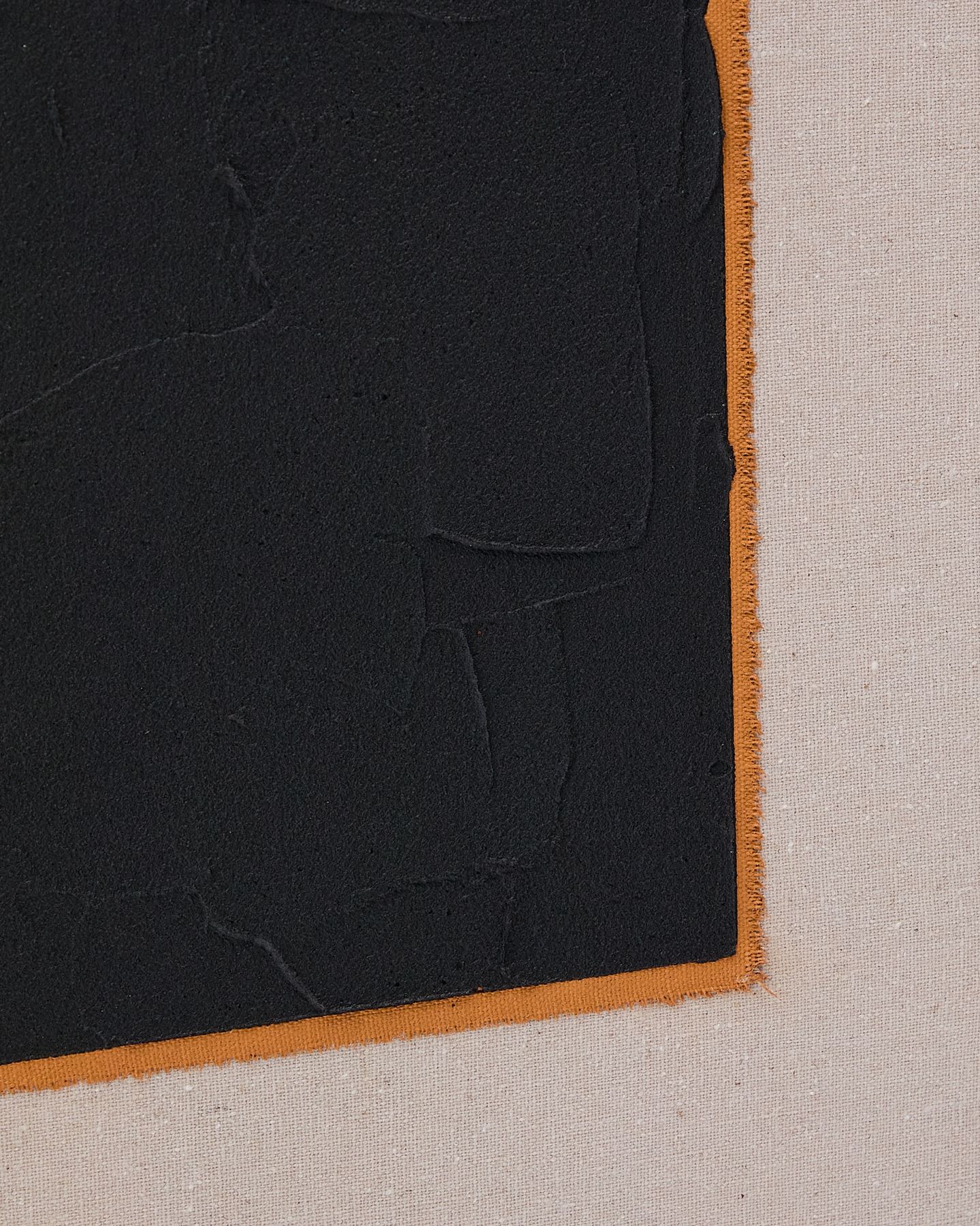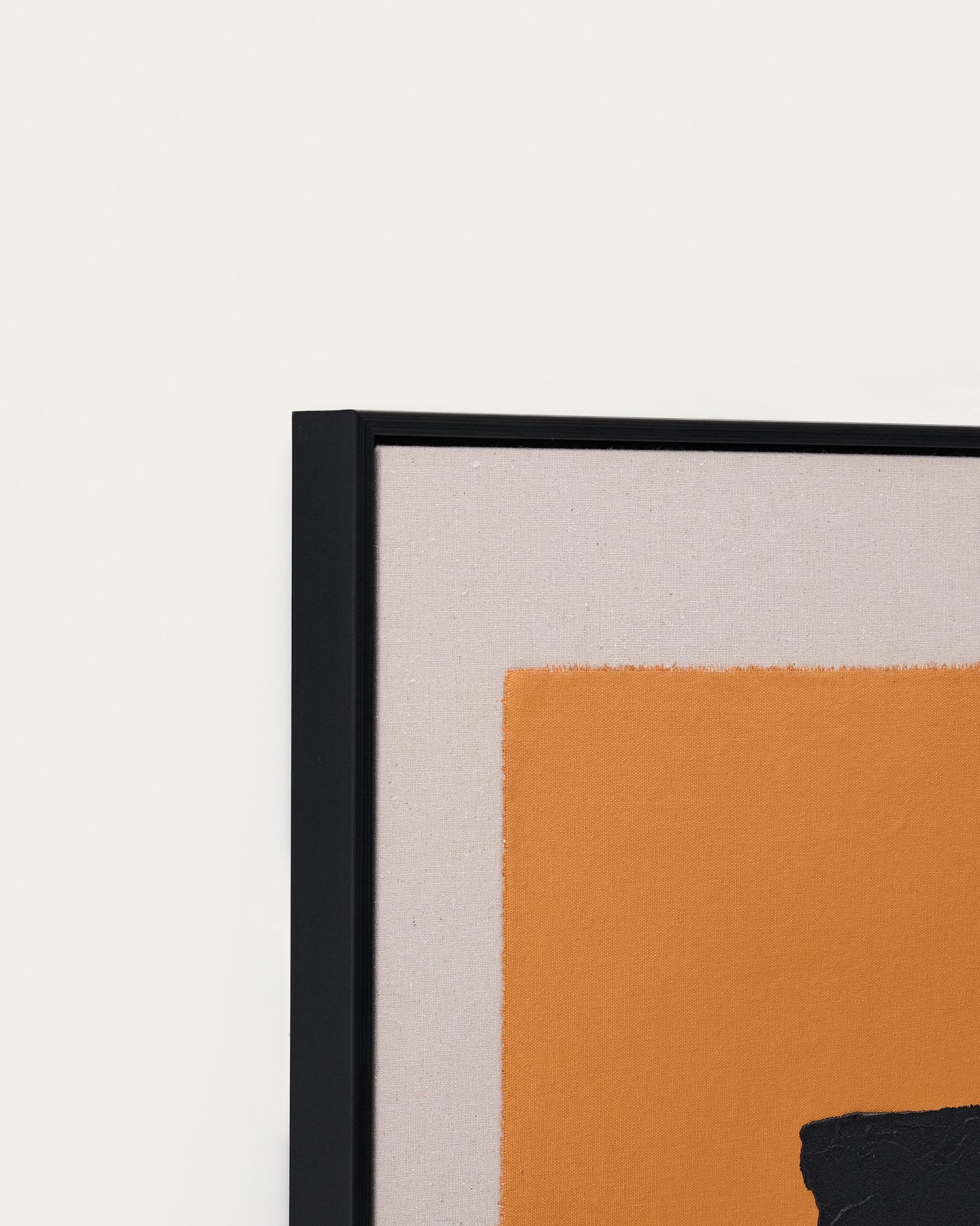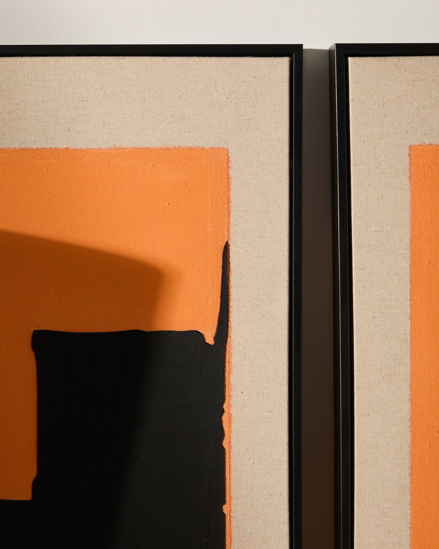 Коллекция Zernu играет на контрасте между чёрным и цветным, создавая положительный и отрицательный эффект, который придаёт визуальную выразительность каждому изделию. Этот дизайн создаёт ощущение предметов на фоне света, подчёркивая формы и объёмы с захватывающим эффектом. Чёрная часть выполнена краской, а цветной фон — из окрашенной ткани, что создаёт наложение, придающее глубину и объём. Холст сочетает в себе разные текстуры, делая заметным контраст между краской и тканью. Каждый штрих воспринимается по-своему, подчёркивая богатство материалов и используемой техники. Картина обрамлена чёрной рамкой, которая определяет и завершает композицию, придавая ей чистый и точный вид.