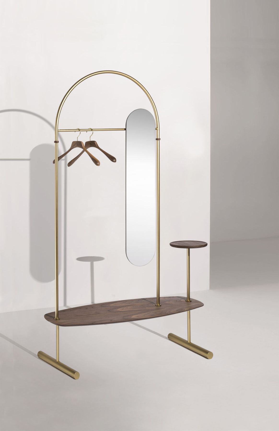 Элегантная и функциональная гардеробная, идеально подходящая для изысканного бутик-отеля, жилого или коммерческого проекта. Стильная гардеробная с металлическим каркасом, отделанным латунью или графитом, с каминной полкой из орехового дерева и столешницей из мрамора Sahara Noir.