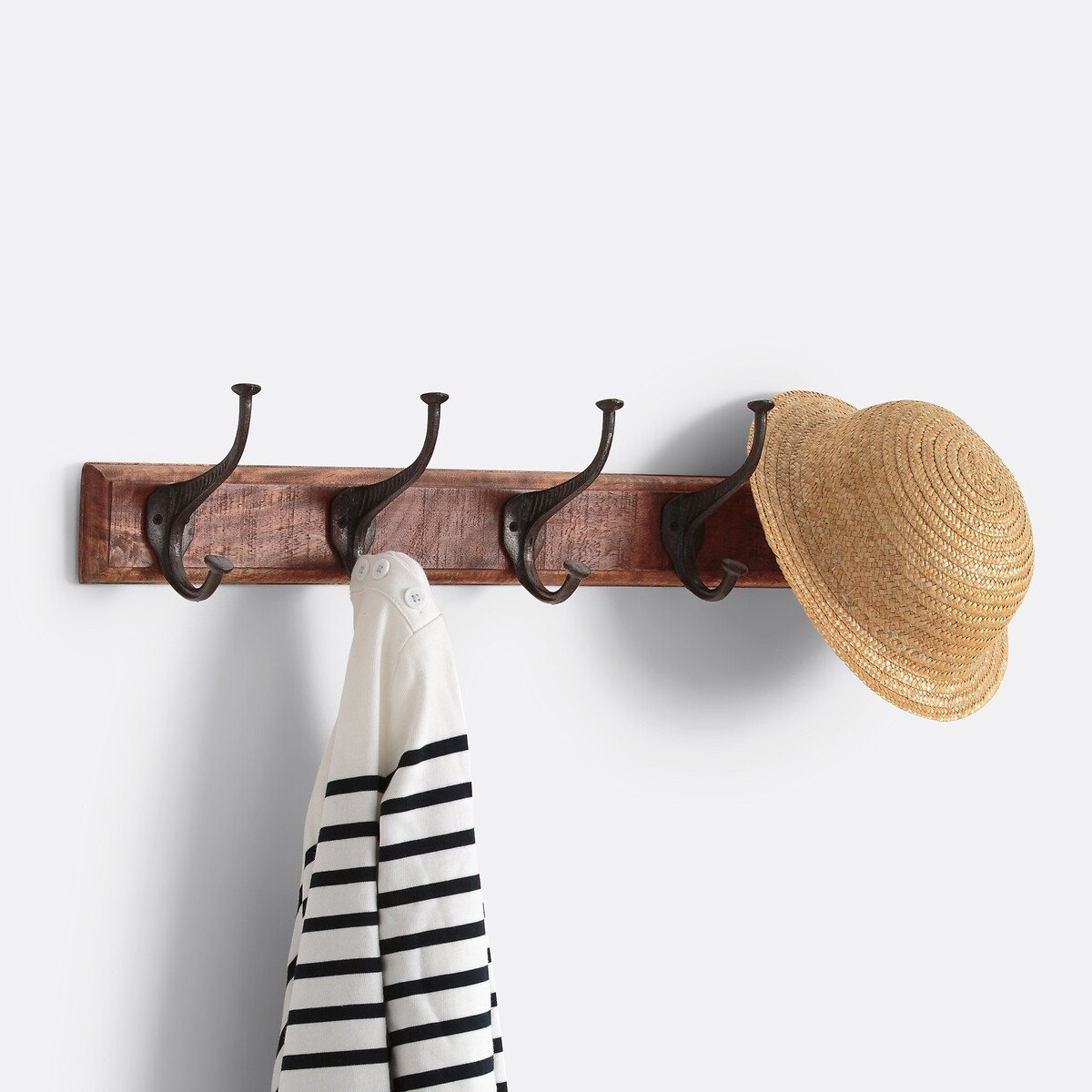 Настенная вешалка с 5 двойными крючками ANET / АНЕТ от La Redoute Interieurs.Описание • Основание из окрашенного массива манго • 5 двойных металлических крючков с антикварным рисунком • Саморезы и дюбели не входят в комплектРазмеры • 63 x 11 см • Высота 14 см • ДРЕВЕСИНА ИЗ УСТОЙЧИВО УПРАВЛЯЕМЫХ ЛЕСОВ. Наличие знака FSC® означает, что древесина, из которой изготовлено изделие, добыта с соблюдением международных стандартов: в процессе добычи не были нарушены права коренных народов, местных жителей и работников, и заготовка велась методом устойчивого лесопользования.Информация об экологических качествах и характеристиках товара • Продукт полностью подлежит переработке.Размеры и вес упаковкиОдна упаковка • Ш69 x В18 x Д19 см, 2,04 кг