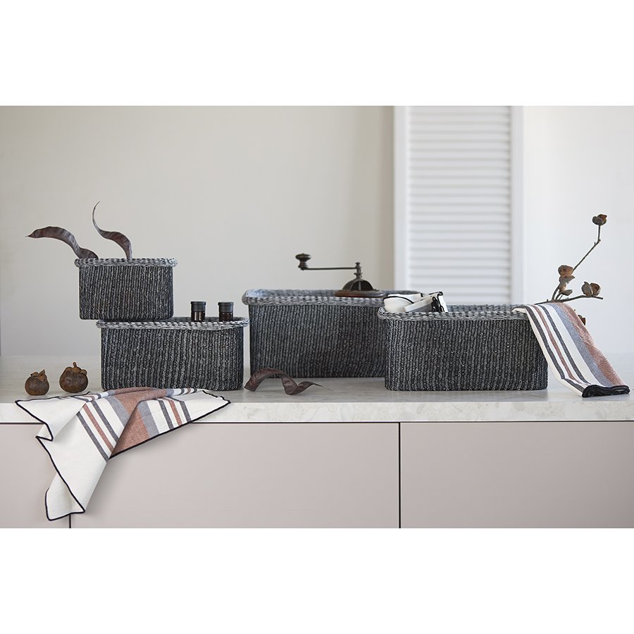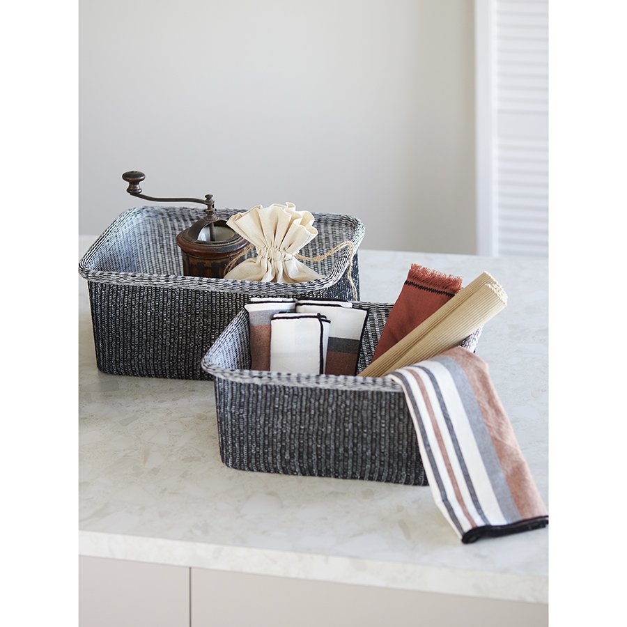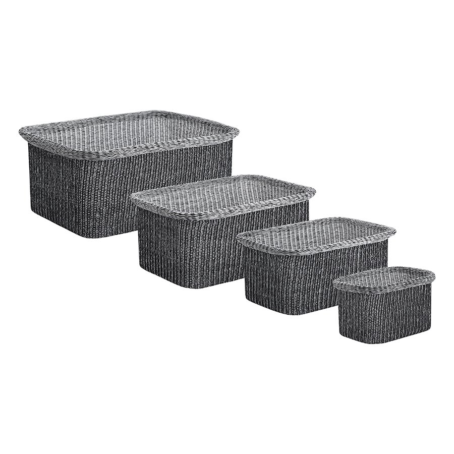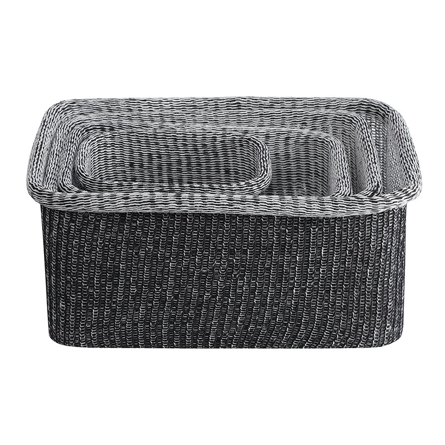 Материалы: полиэстер, хлопок, железо. Размеры корзин: 30х42х19,5 см; 27х37х18,5 см; 22х32х17 см; 17х22,5х13,5 см. Цвет: черный. Количество в наборе: 4 шт. Максимальная нагрузка: 17 кг, 13 кг, 8 кг, 3,5 кг.